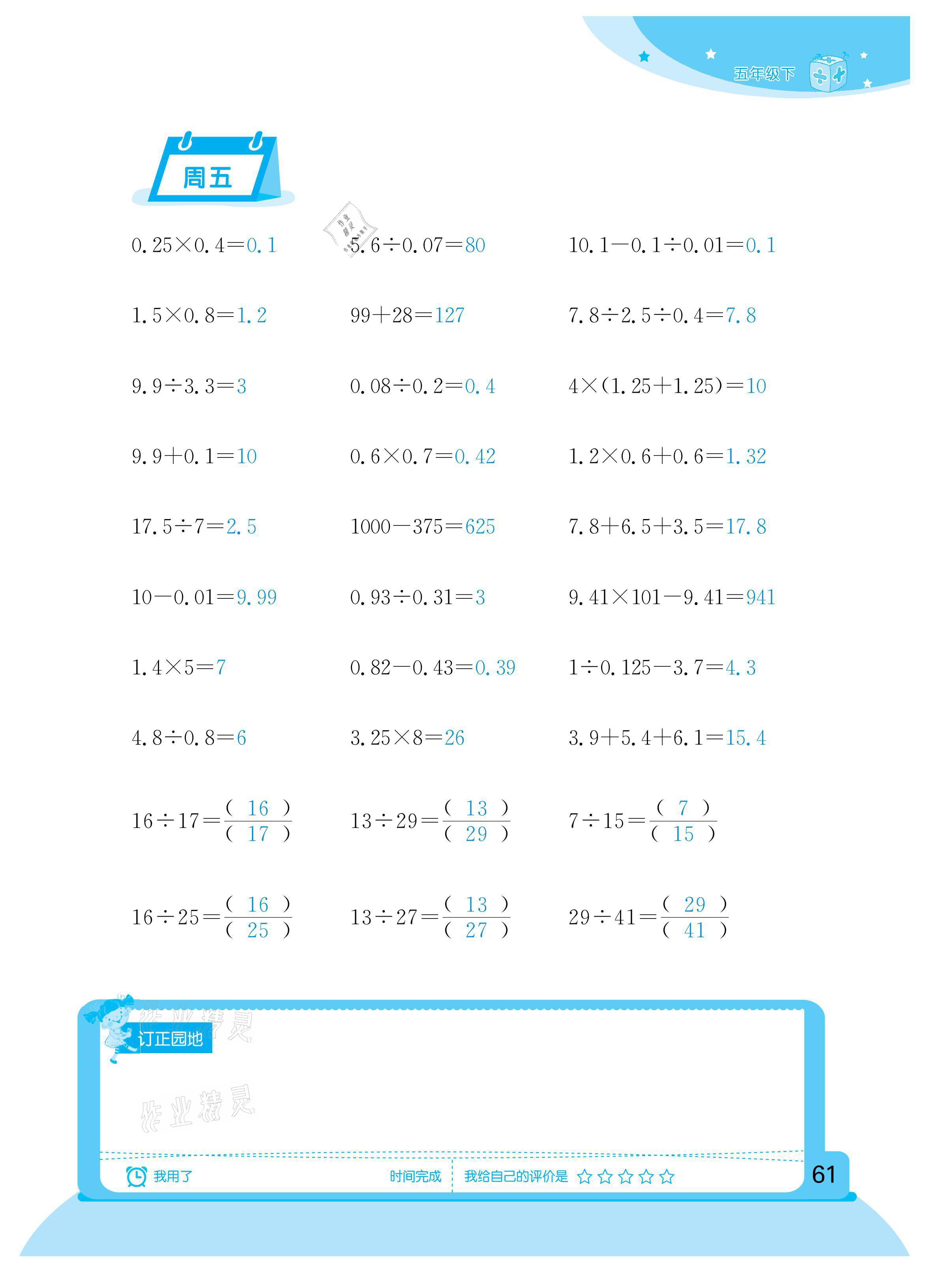注:目前有些书本章节名称可能整理的还不是很完善,但都是按照顺序排列的,请同学们按照顺序仔细查找。练习册 2021年计算小状元五年级下册新疆文化出版社 答案主要是用来给同学们做完题方便对答案用的,请勿直接抄袭。