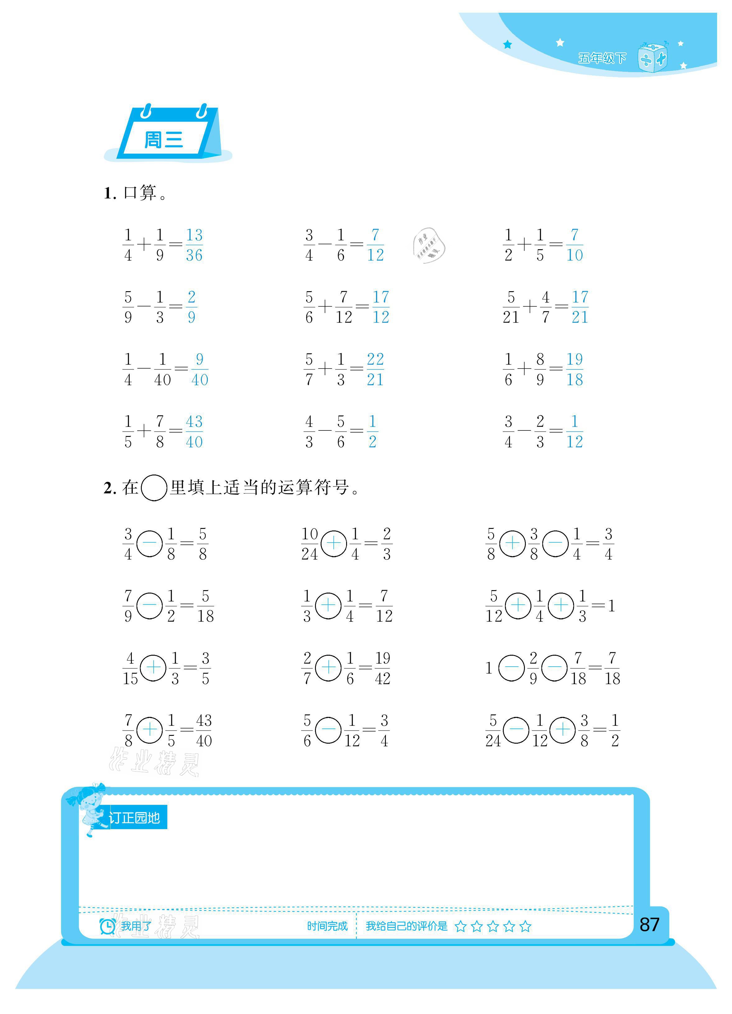 注:目前有些书本章节名称可能整理的还不是很完善,但都是按照顺序排列的,请同学们按照顺序仔细查找。练习册 2021年计算小状元五年级下册新疆文化出版社 答案主要是用来给同学们做完题方便对答案用的,请勿直接抄袭。