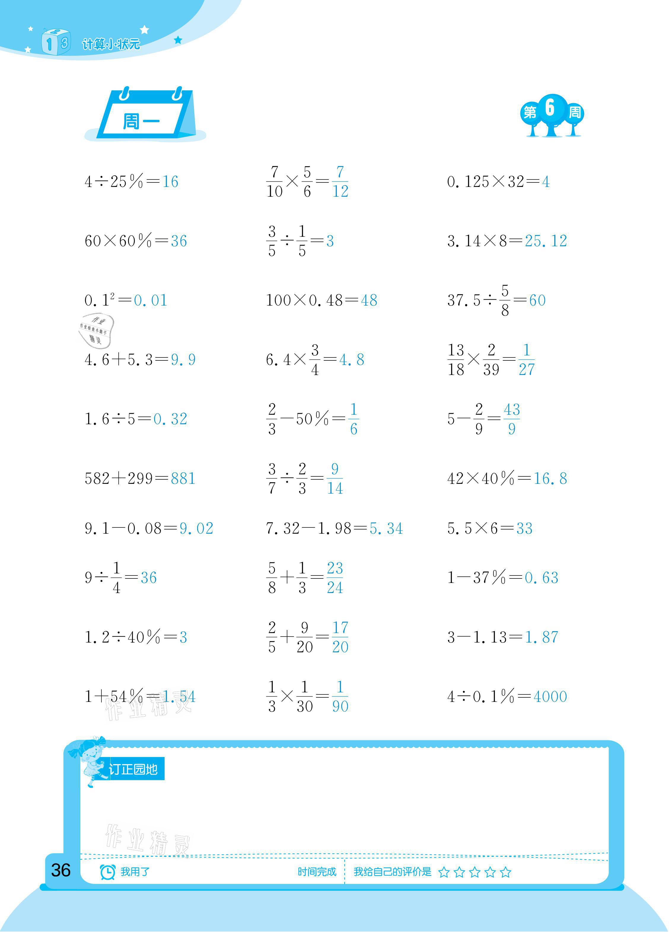 2021年计算小状元六年级下册新疆文化出版社