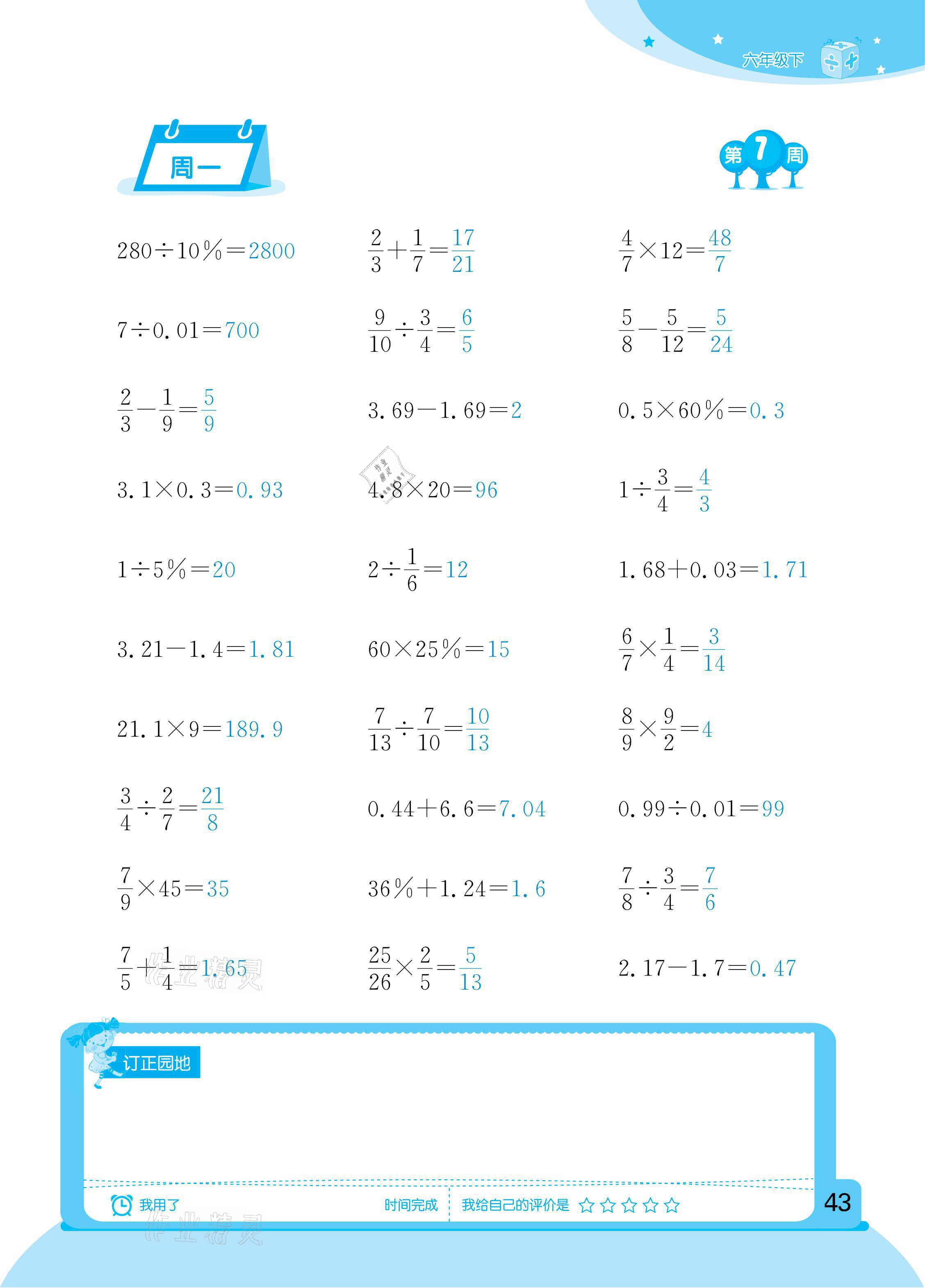 注:目前有些书本章节名称可能整理的还不是很完善,但都是按照顺序排列的,请同学们按照顺序仔细查找。练习册 2021年计算小状元六年级下册新疆文化出版社 答案主要是用来给同学们做完题方便对答案用的,请勿直接抄袭。