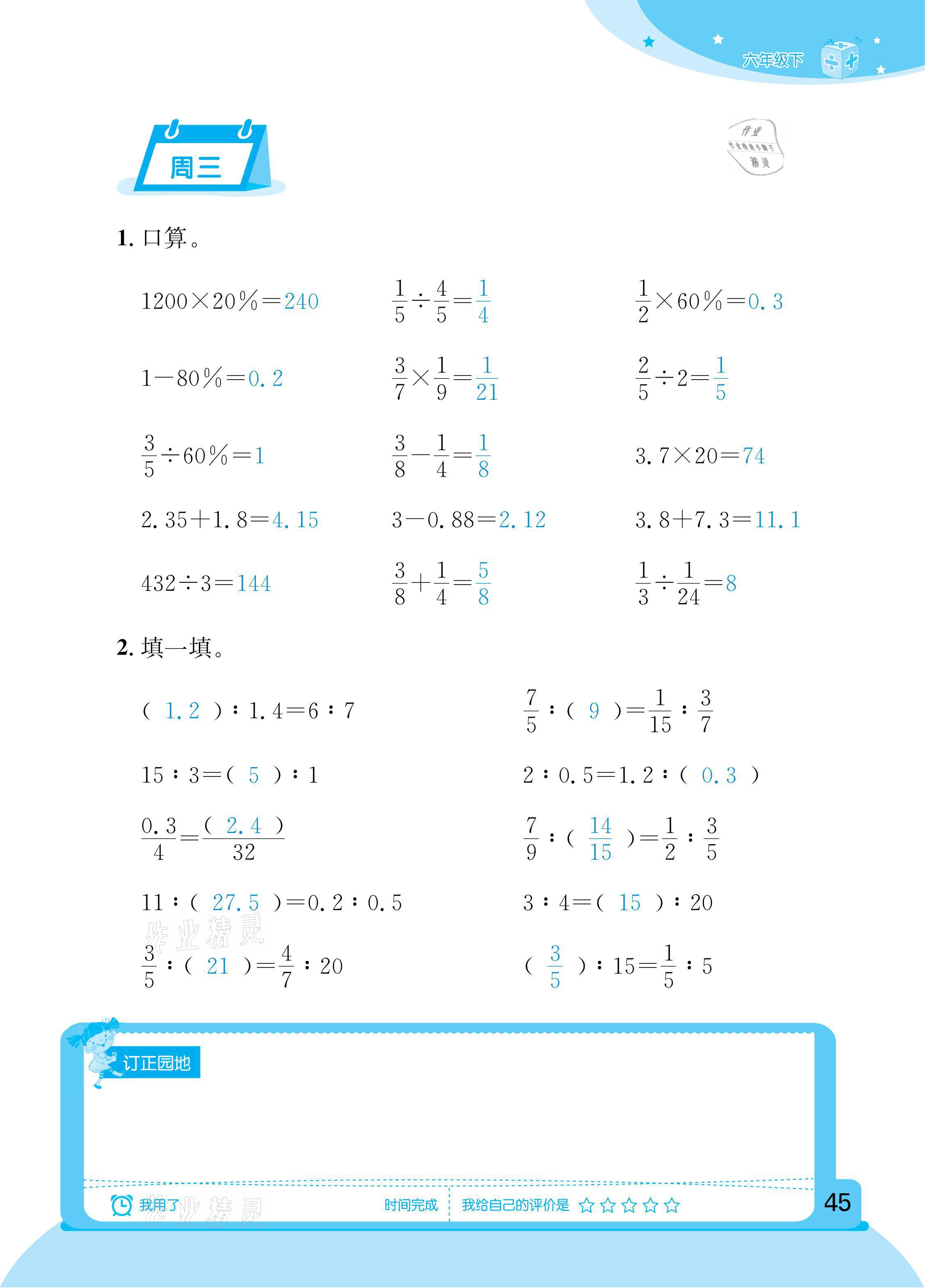 注:目前有些书本章节名称可能整理的还不是很完善,但都是按照顺序排列的,请同学们按照顺序仔细查找。练习册 2021年计算小状元六年级下册新疆文化出版社 答案主要是用来给同学们做完题方便对答案用的,请勿直接抄袭。