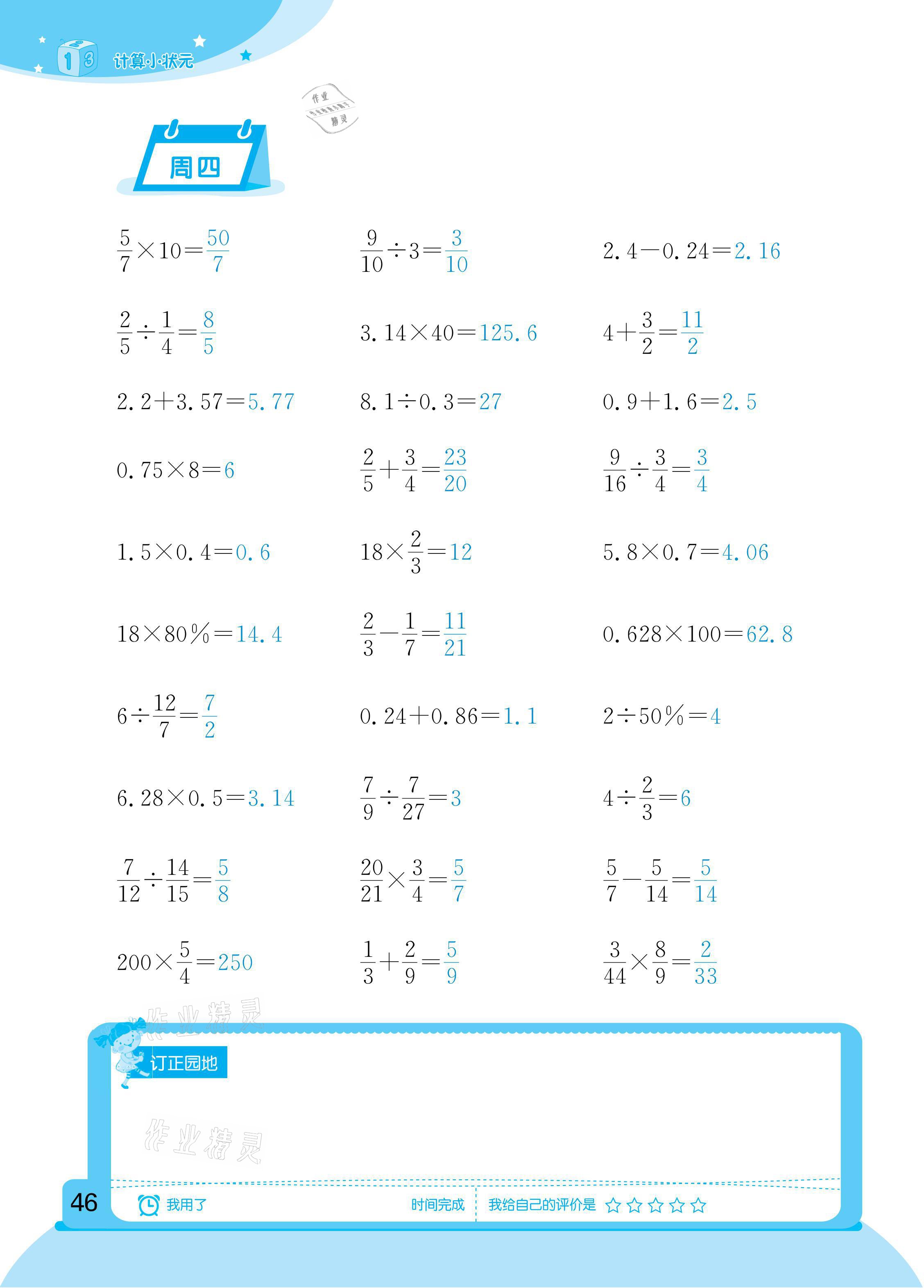 注:目前有些书本章节名称可能整理的还不是很完善,但都是按照顺序排列的,请同学们按照顺序仔细查找。练习册 2021年计算小状元六年级下册新疆文化出版社 答案主要是用来给同学们做完题方便对答案用的,请勿直接抄袭。