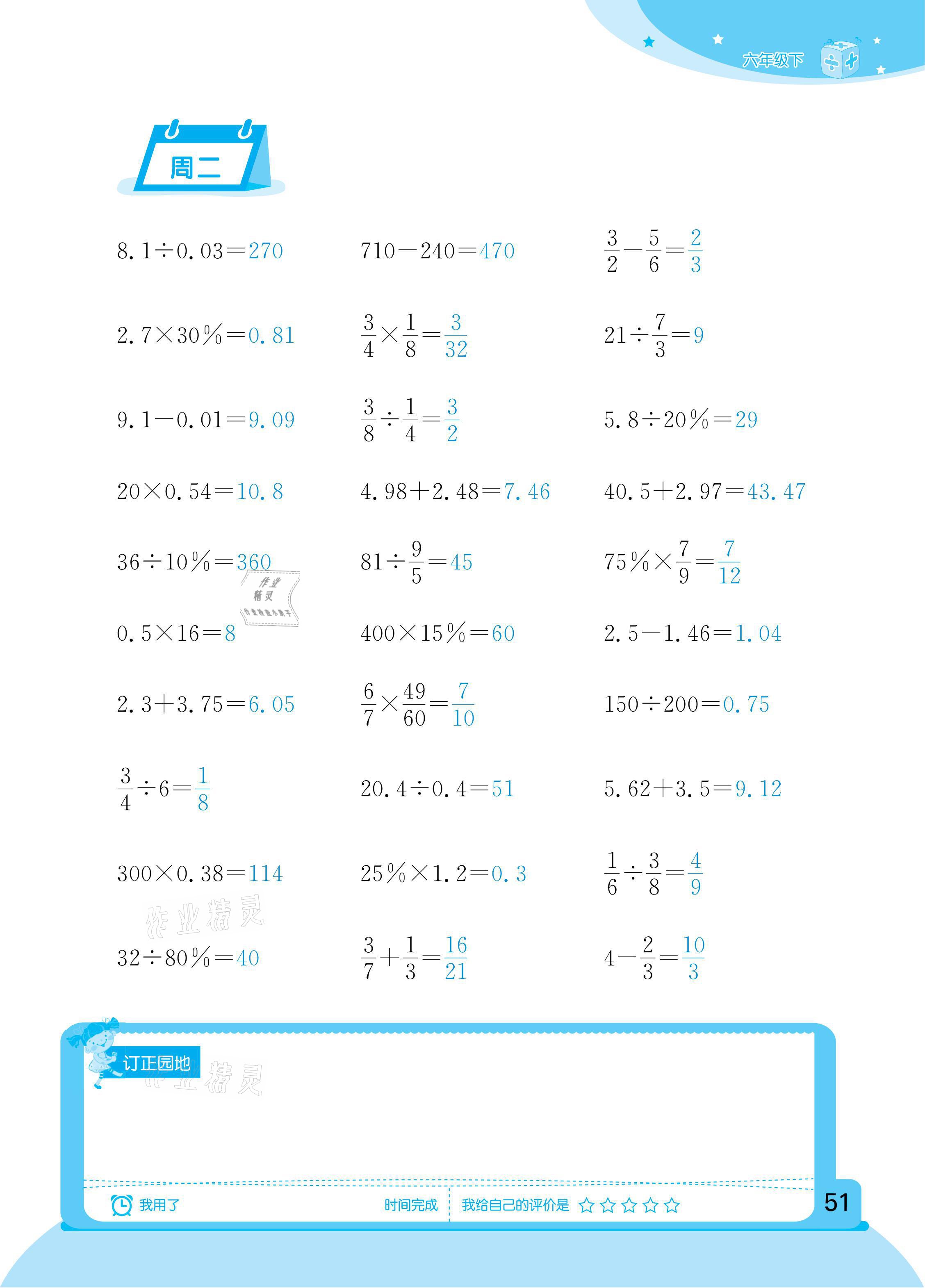 2021年计算小状元六年级下册新疆文化出版社