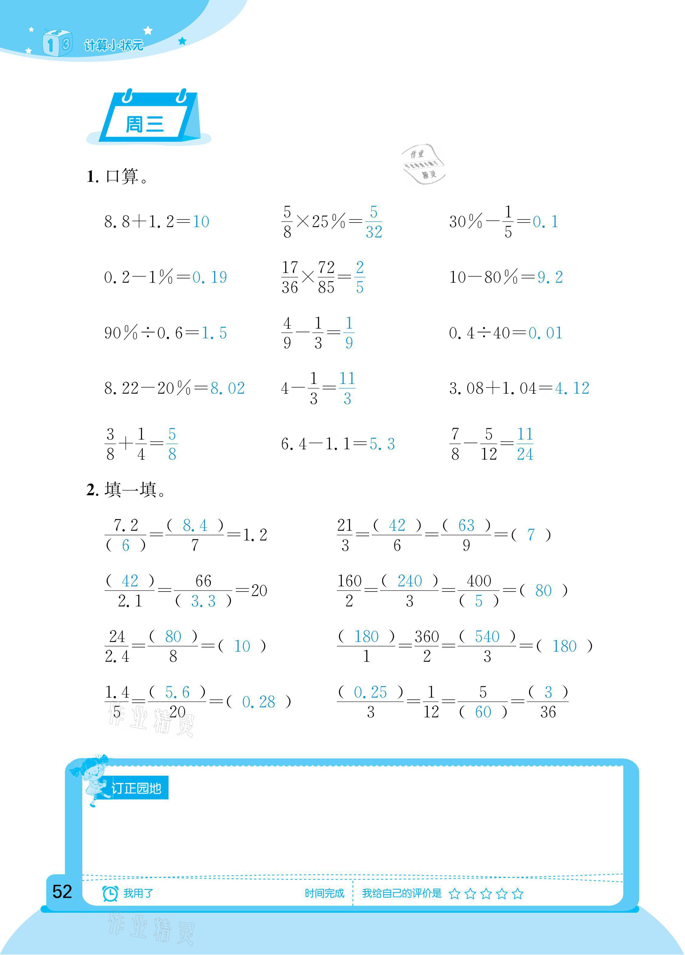 注:目前有些书本章节名称可能整理的还不是很完善,但都是按照顺序排列的,请同学们按照顺序仔细查找。练习册 2021年计算小状元六年级下册新疆文化出版社 答案主要是用来给同学们做完题方便对答案用的,请勿直接抄袭。