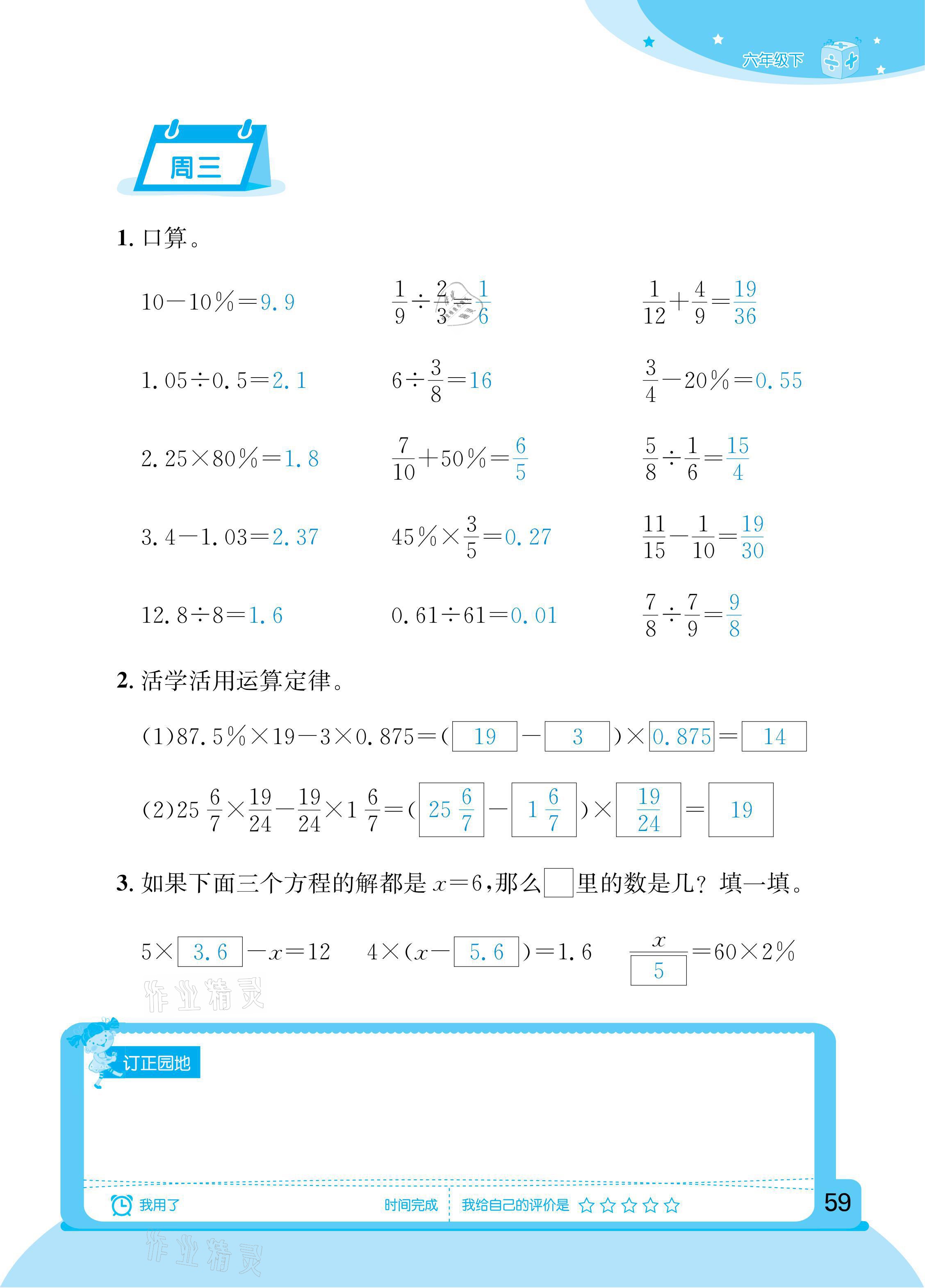 注:目前有些书本章节名称可能整理的还不是很完善,但都是按照顺序排列的,请同学们按照顺序仔细查找。练习册 2021年计算小状元六年级下册新疆文化出版社 答案主要是用来给同学们做完题方便对答案用的,请勿直接抄袭。