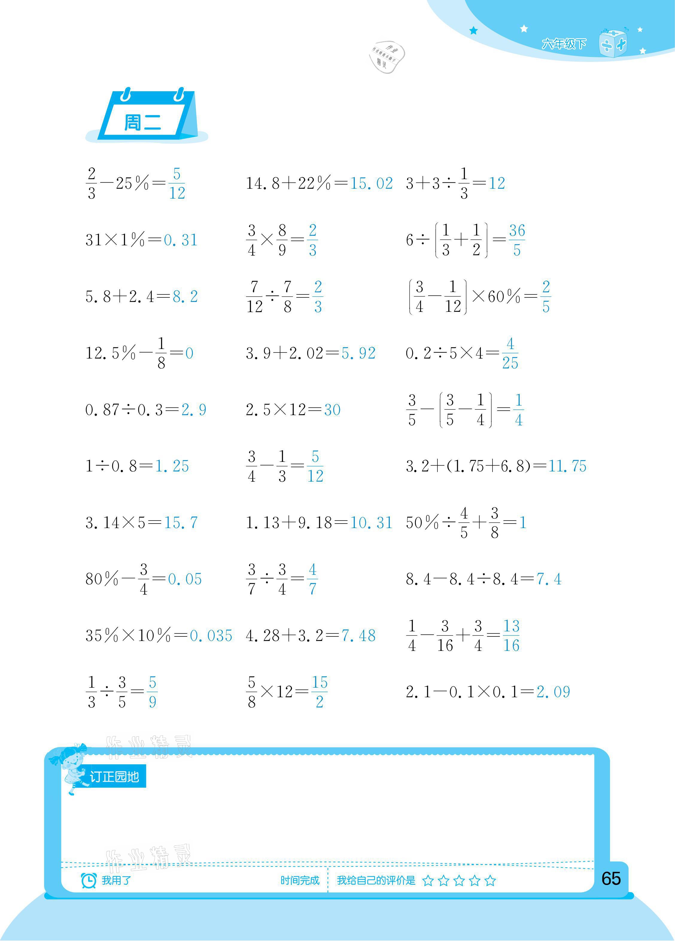 注:目前有些书本章节名称可能整理的还不是很完善,但都是按照顺序排列的,请同学们按照顺序仔细查找。练习册 2021年计算小状元六年级下册新疆文化出版社 答案主要是用来给同学们做完题方便对答案用的,请勿直接抄袭。
