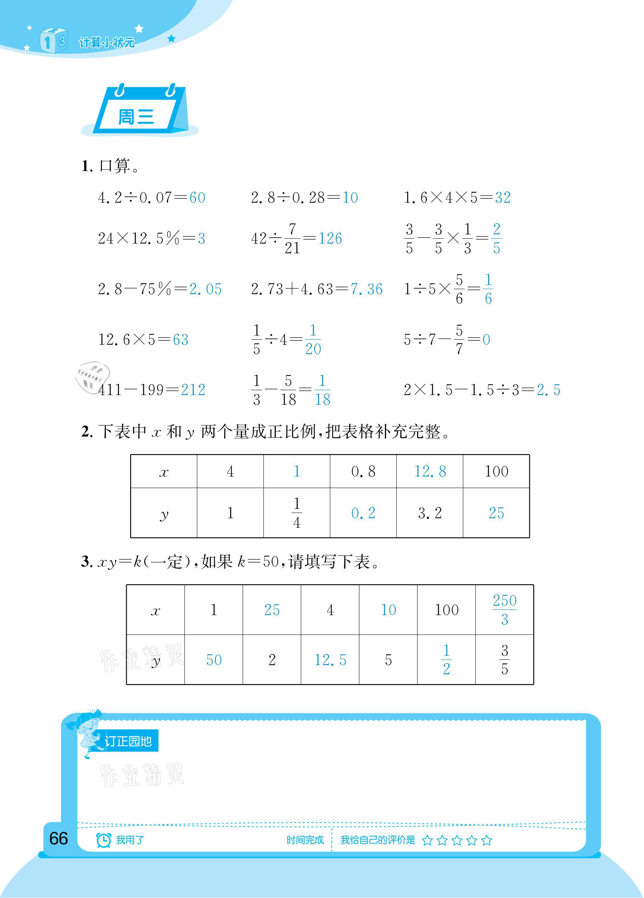 注:目前有些书本章节名称可能整理的还不是很完善,但都是按照顺序排列的,请同学们按照顺序仔细查找。练习册 2021年计算小状元六年级下册新疆文化出版社 答案主要是用来给同学们做完题方便对答案用的,请勿直接抄袭。