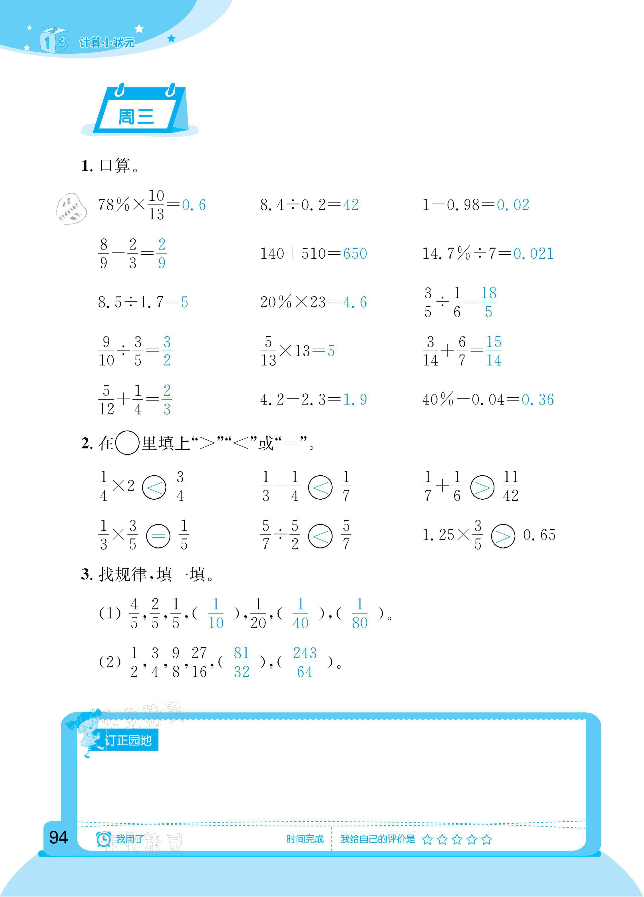 注:目前有些书本章节名称可能整理的还不是很完善,但都是按照顺序排列的,请同学们按照顺序仔细查找。练习册 2021年计算小状元六年级下册新疆文化出版社 答案主要是用来给同学们做完题方便对答案用的,请勿直接抄袭。