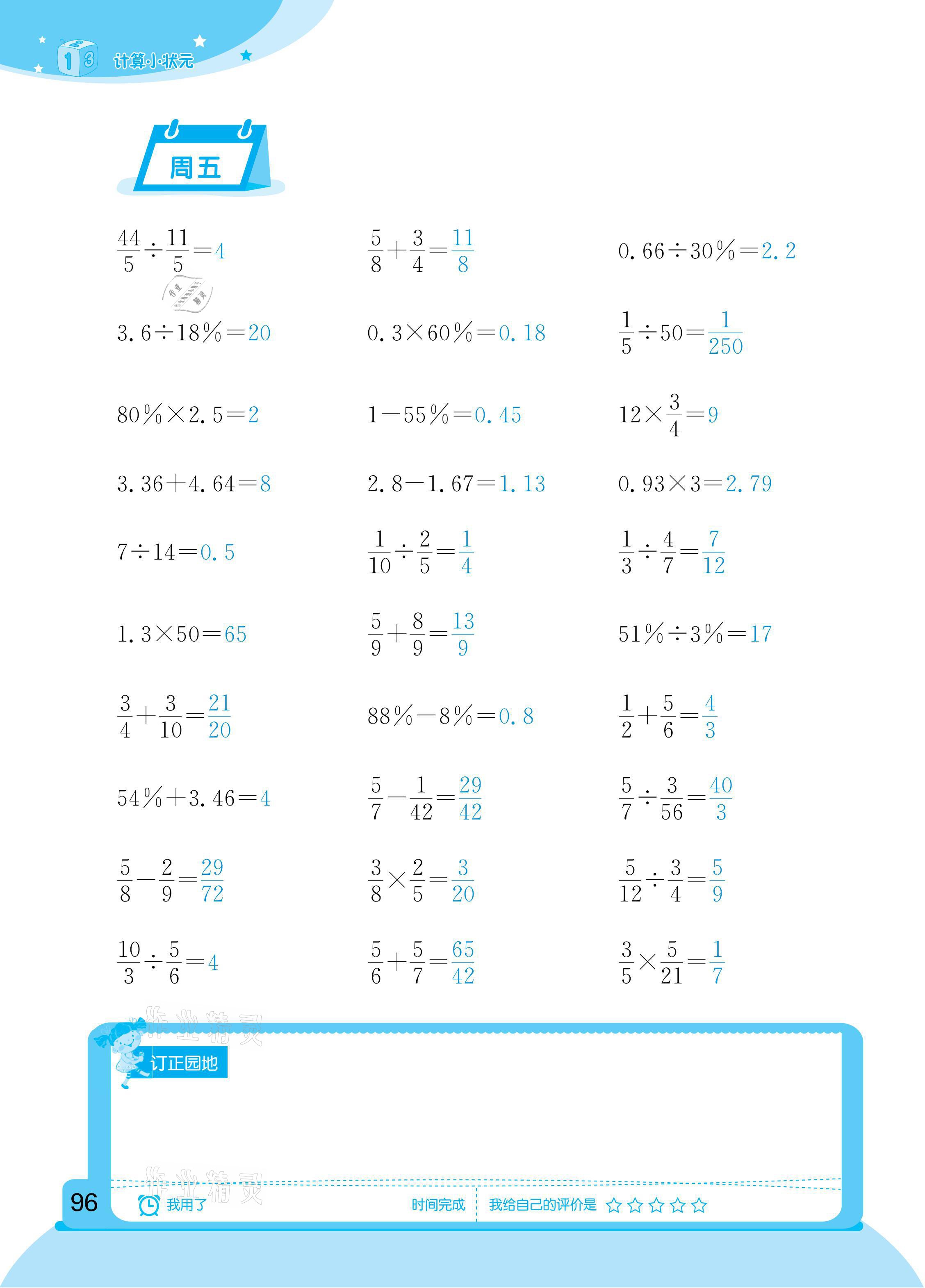 注:目前有些书本章节名称可能整理的还不是很完善,但都是按照顺序排列的,请同学们按照顺序仔细查找。练习册 2021年计算小状元六年级下册新疆文化出版社 答案主要是用来给同学们做完题方便对答案用的,请勿直接抄袭。