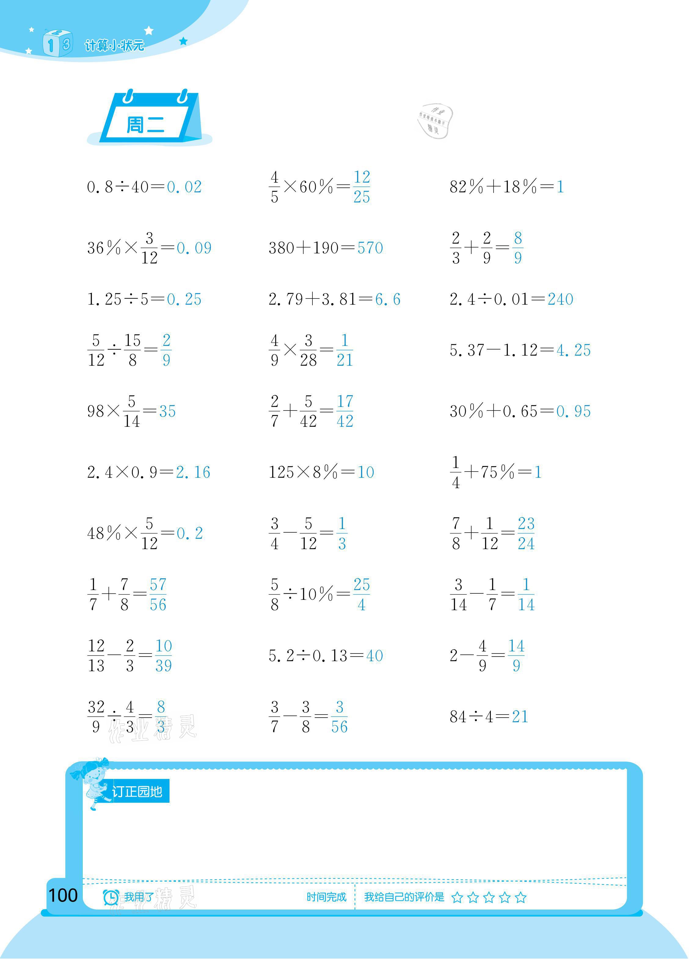 注:目前有些书本章节名称可能整理的还不是很完善,但都是按照顺序排列的,请同学们按照顺序仔细查找。练习册 2021年计算小状元六年级下册新疆文化出版社 答案主要是用来给同学们做完题方便对答案用的,请勿直接抄袭。