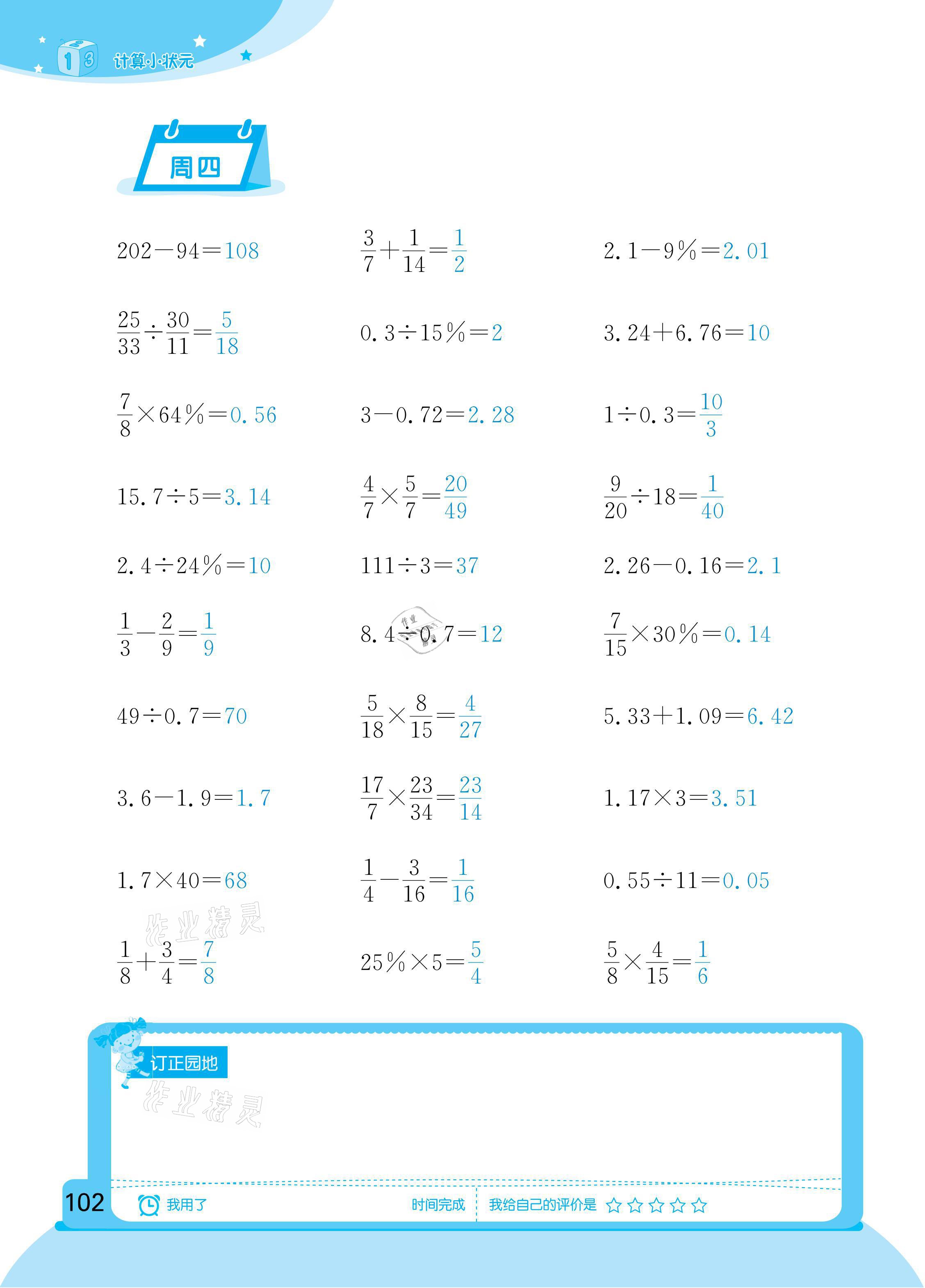注:目前有些书本章节名称可能整理的还不是很完善,但都是按照顺序排列的,请同学们按照顺序仔细查找。练习册 2021年计算小状元六年级下册新疆文化出版社 答案主要是用来给同学们做完题方便对答案用的,请勿直接抄袭。