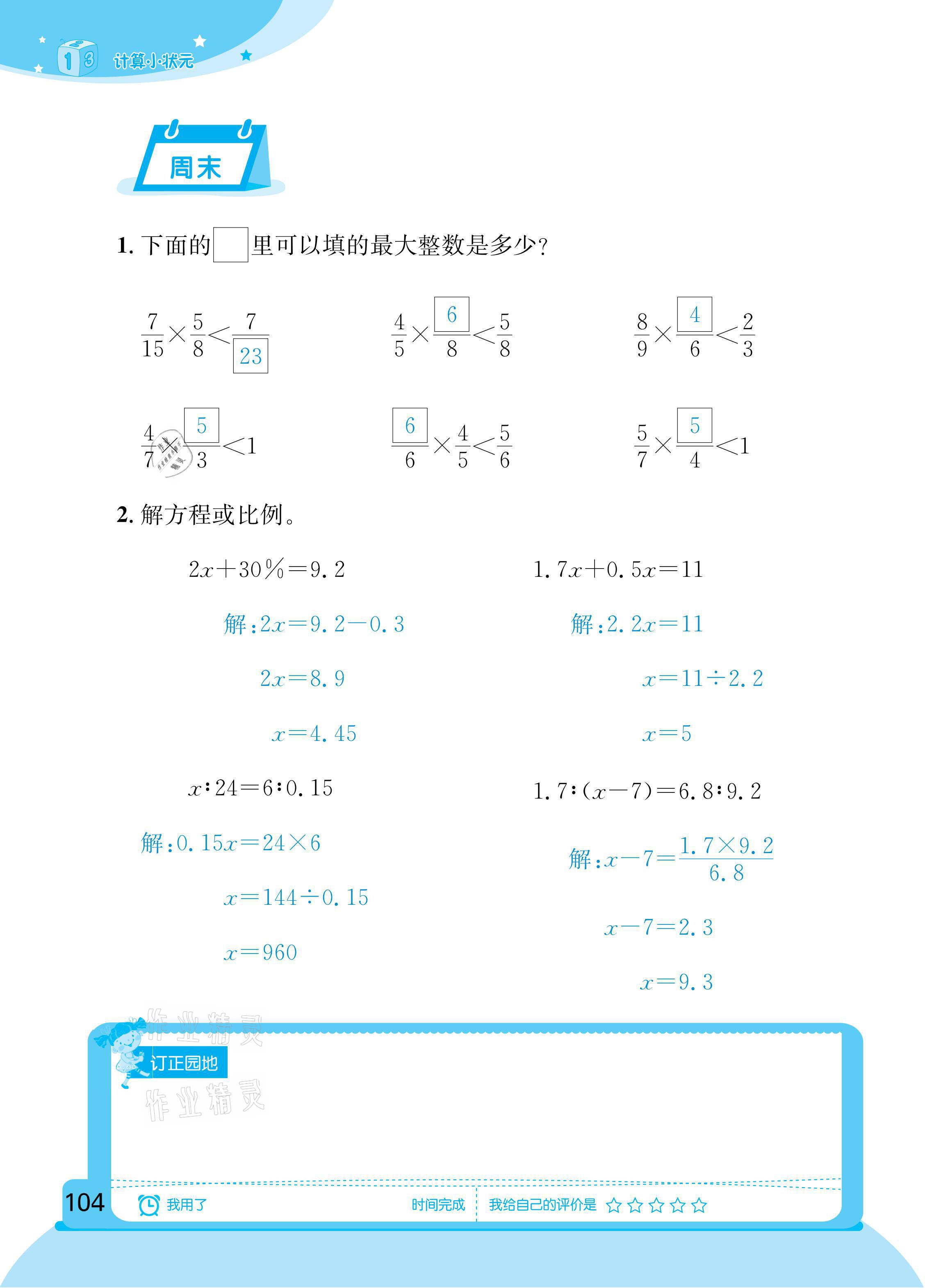 注:目前有些书本章节名称可能整理的还不是很完善,但都是按照顺序排列的,请同学们按照顺序仔细查找。练习册 2021年计算小状元六年级下册新疆文化出版社 答案主要是用来给同学们做完题方便对答案用的,请勿直接抄袭。