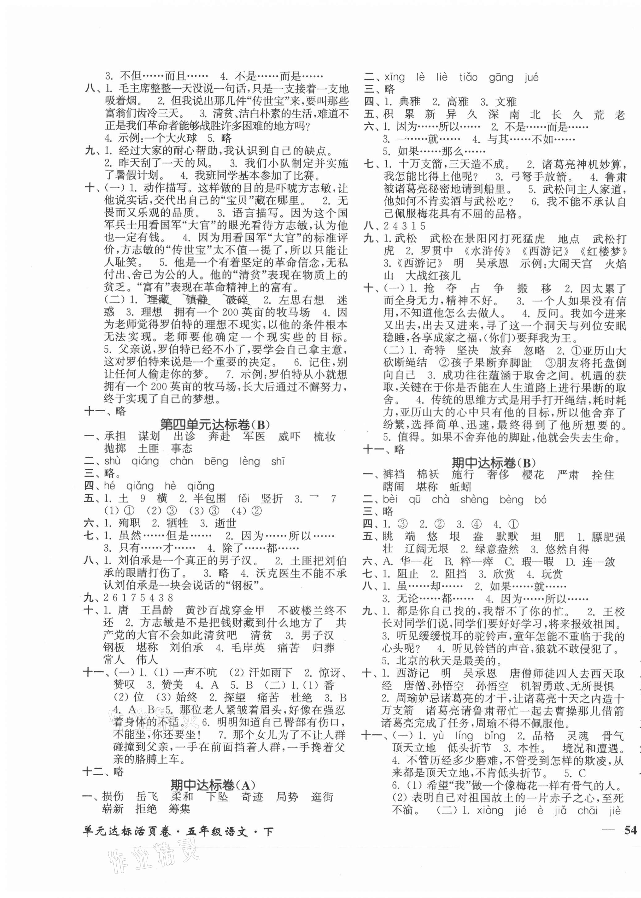 注:目前有些书本章节名称可能整理的还不是很完善,但都是按照顺序排列的,请同学们按照顺序仔细查找。练习册 2021年单元达标活页卷五年级语文下册人教版 答案主要是用来给同学们做完题方便对答案用的,请勿直接抄袭。