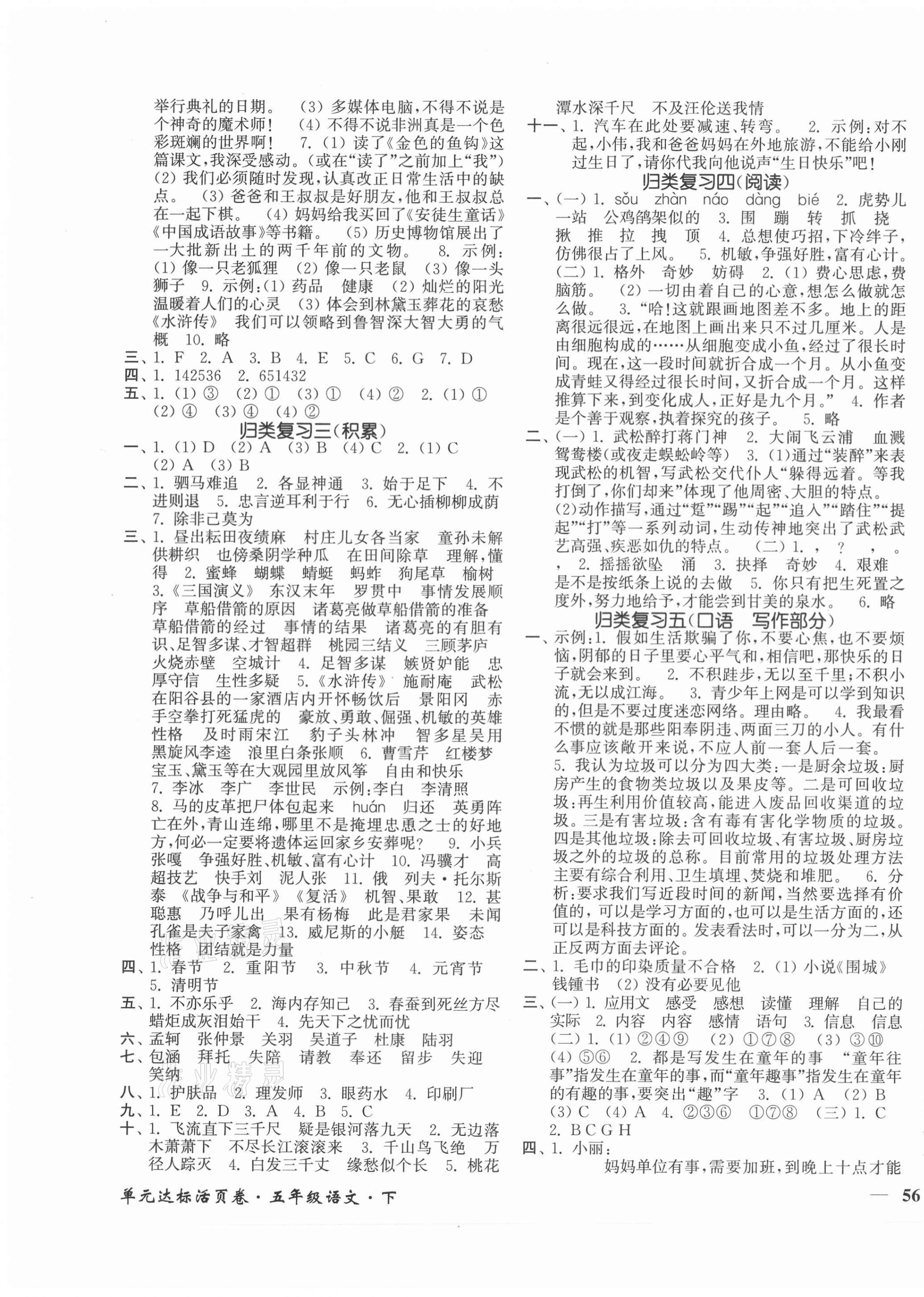 注:目前有些书本章节名称可能整理的还不是很完善,但都是按照顺序排列的,请同学们按照顺序仔细查找。练习册 2021年单元达标活页卷五年级语文下册人教版 答案主要是用来给同学们做完题方便对答案用的,请勿直接抄袭。
