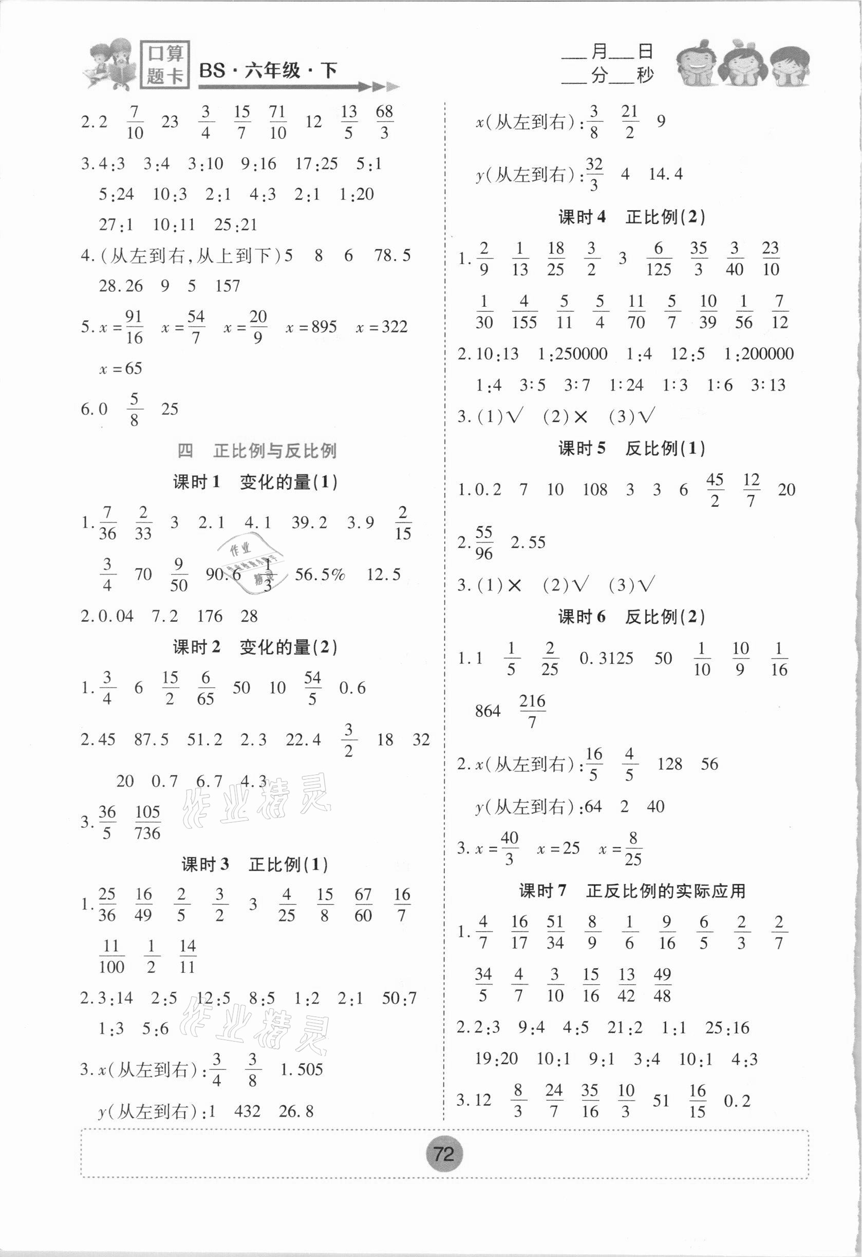 注:目前有些书本章节名称可能整理的还不是很完善,但都是按照顺序排列的,请同学们按照顺序仔细查找。练习册 2021年小学生口算题卡六年级下册北师大版青海人民出版社 答案主要是用来给同学们做完题方便对答案用的,请勿直接抄袭。