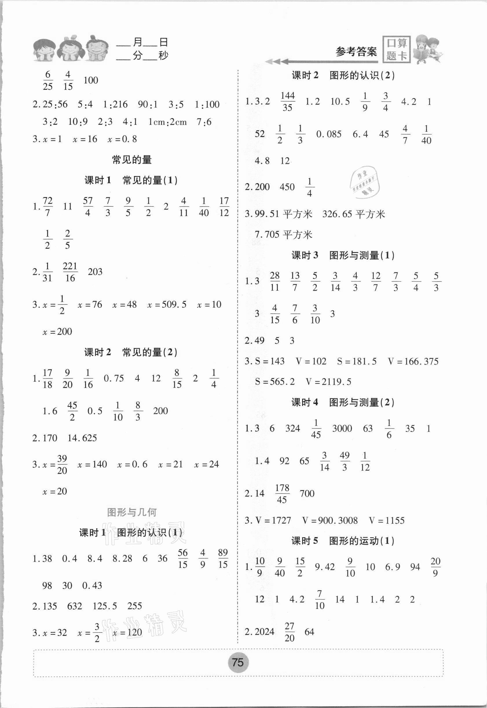 注:目前有些书本章节名称可能整理的还不是很完善,但都是按照顺序排列的,请同学们按照顺序仔细查找。练习册 2021年小学生口算题卡六年级下册北师大版青海人民出版社 答案主要是用来给同学们做完题方便对答案用的,请勿直接抄袭。