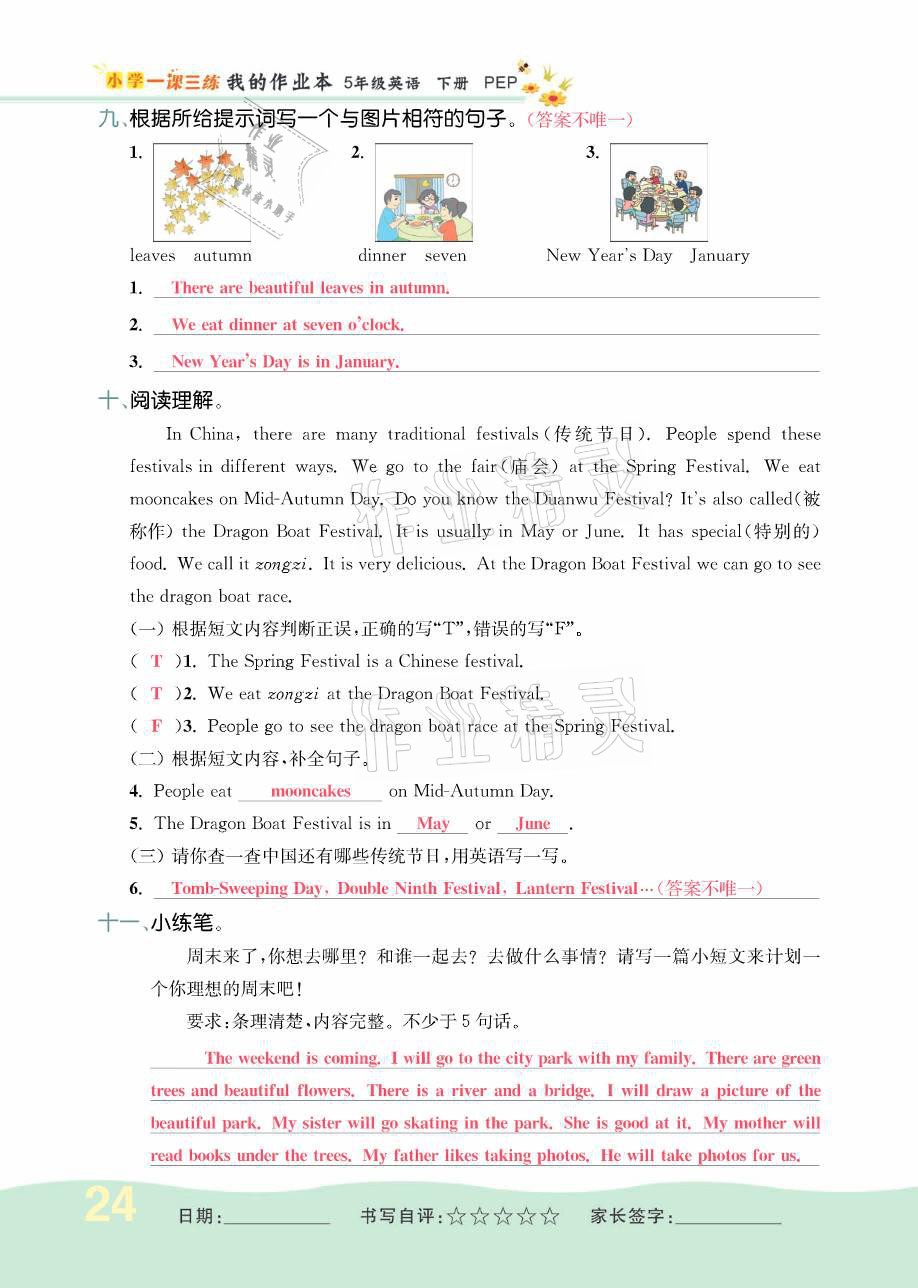 2021年小学一课三练我的作业本五年级英语下册人教版