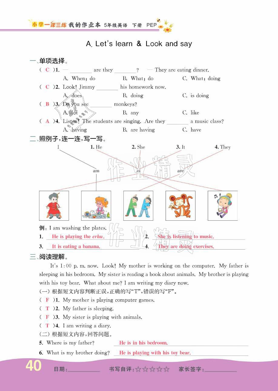 注:目前有些书本章节名称可能整理的还不是很完善,但都是按照顺序排列的,请同学们按照顺序仔细查找。练习册 2021年小学一课三练我的作业本五年级英语下册人教版 答案主要是用来给同学们做完题方便对答案用的,请勿直接抄袭。