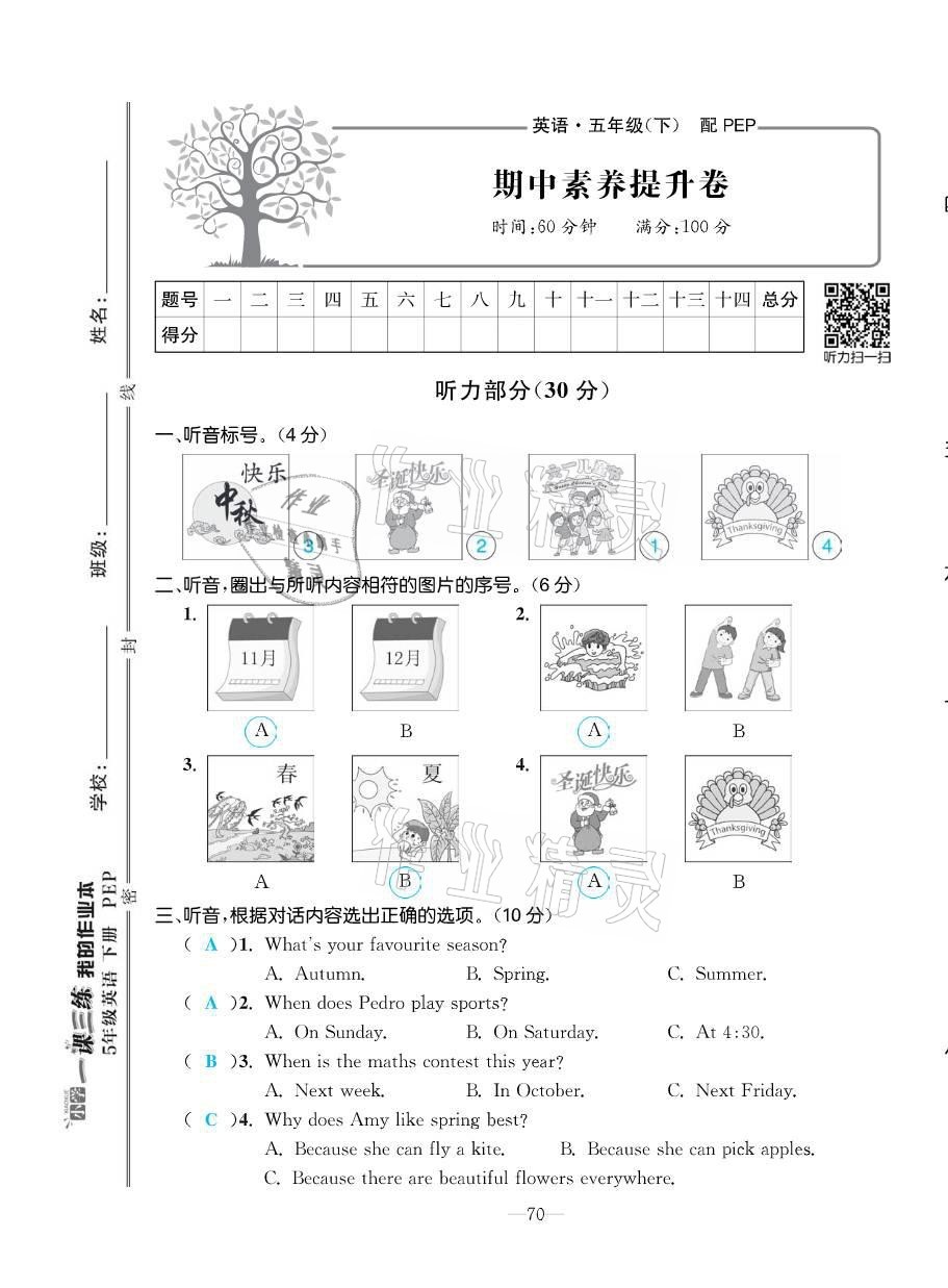 注:目前有些书本章节名称可能整理的还不是很完善,但都是按照顺序排列的,请同学们按照顺序仔细查找。练习册 2021年小学一课三练我的作业本五年级英语下册人教版 答案主要是用来给同学们做完题方便对答案用的,请勿直接抄袭。
