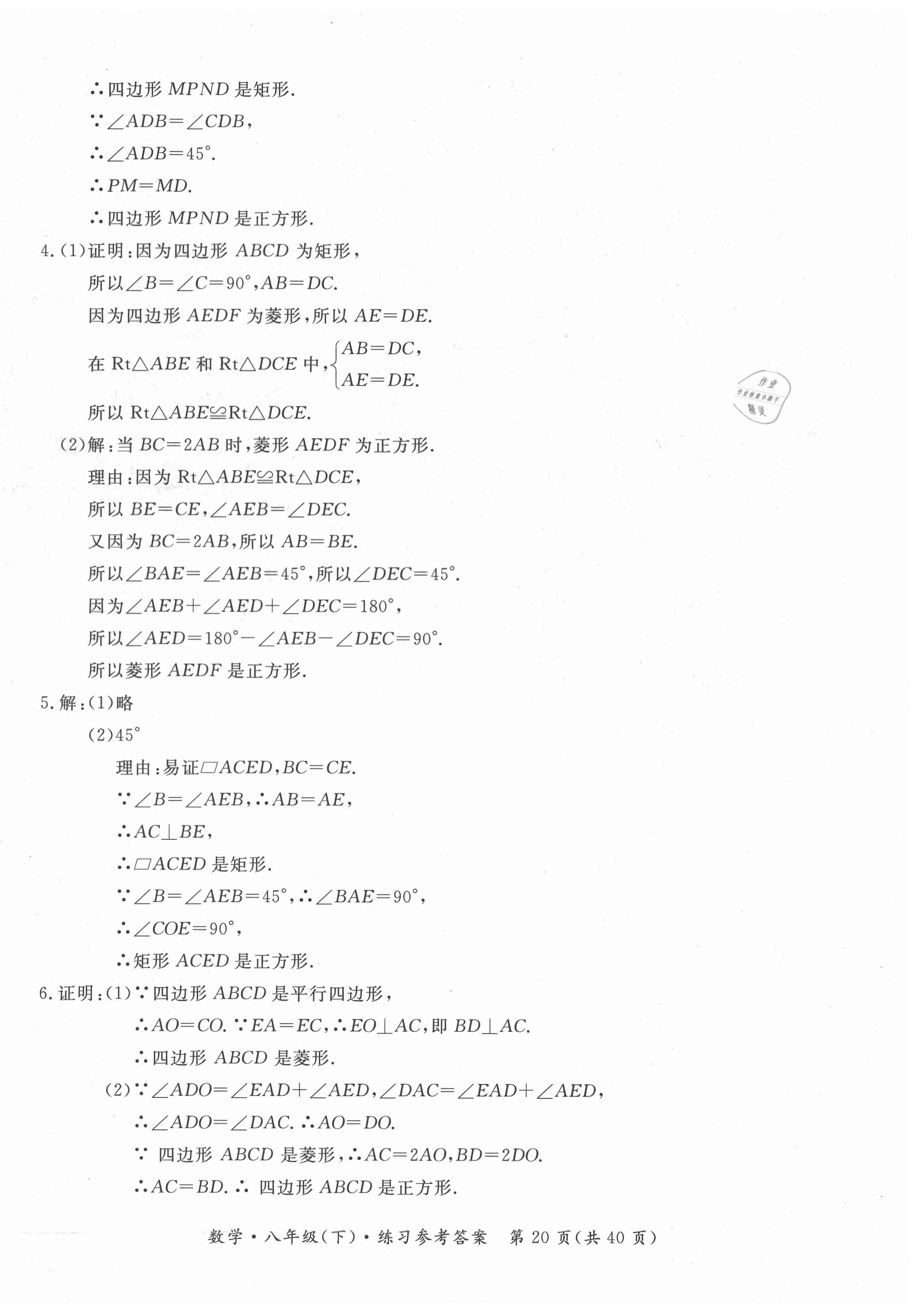 注:目前有些书本章节名称可能整理的还不是很完善,但都是按照顺序排列的,请同学们按照顺序仔细查找。练习册 2021年形成性练习与检测八年级数学下册人教版 答案主要是用来给同学们做完题方便对答案用的,请勿直接抄袭。