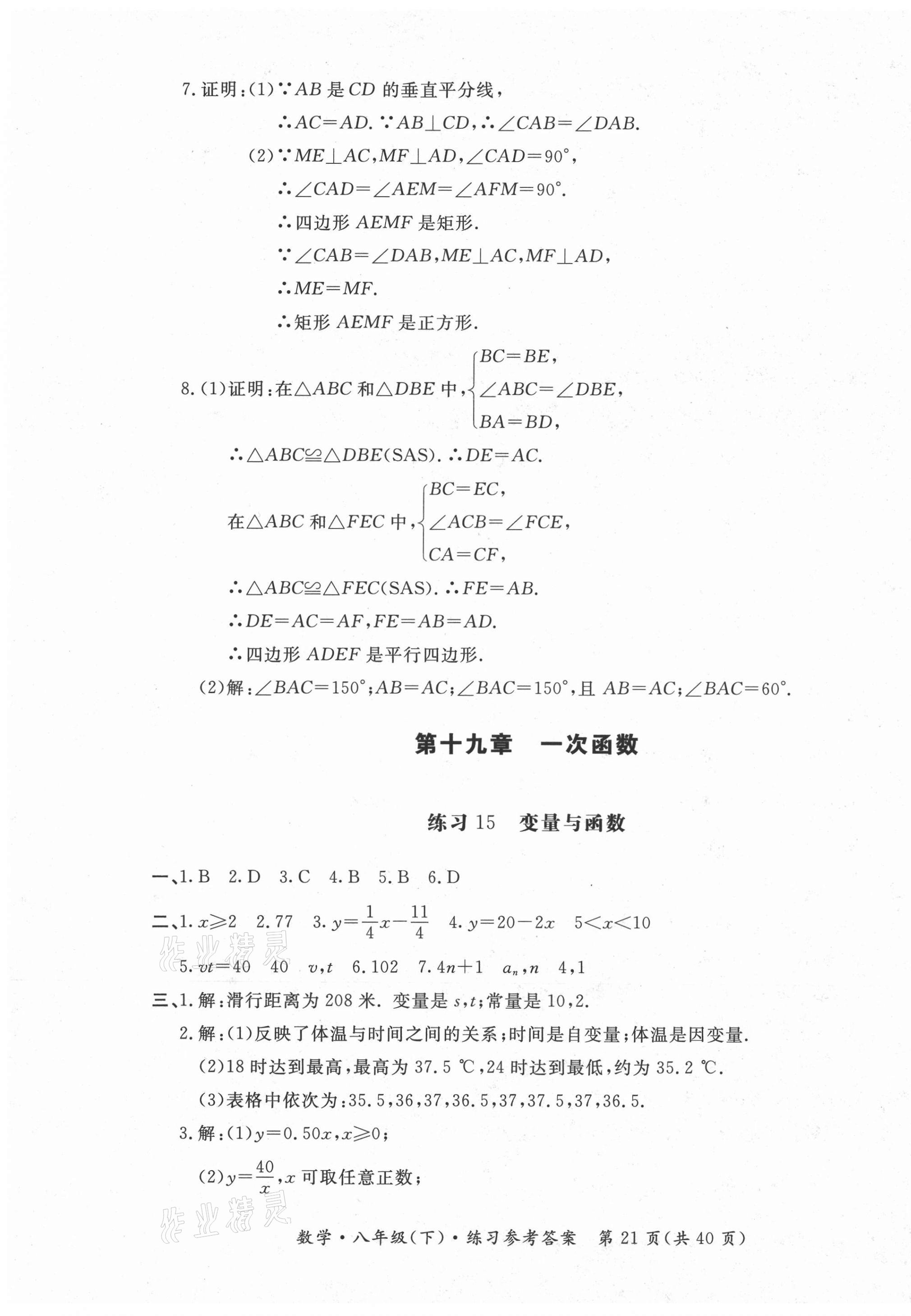 注:目前有些书本章节名称可能整理的还不是很完善,但都是按照顺序排列的,请同学们按照顺序仔细查找。练习册 2021年形成性练习与检测八年级数学下册人教版 答案主要是用来给同学们做完题方便对答案用的,请勿直接抄袭。