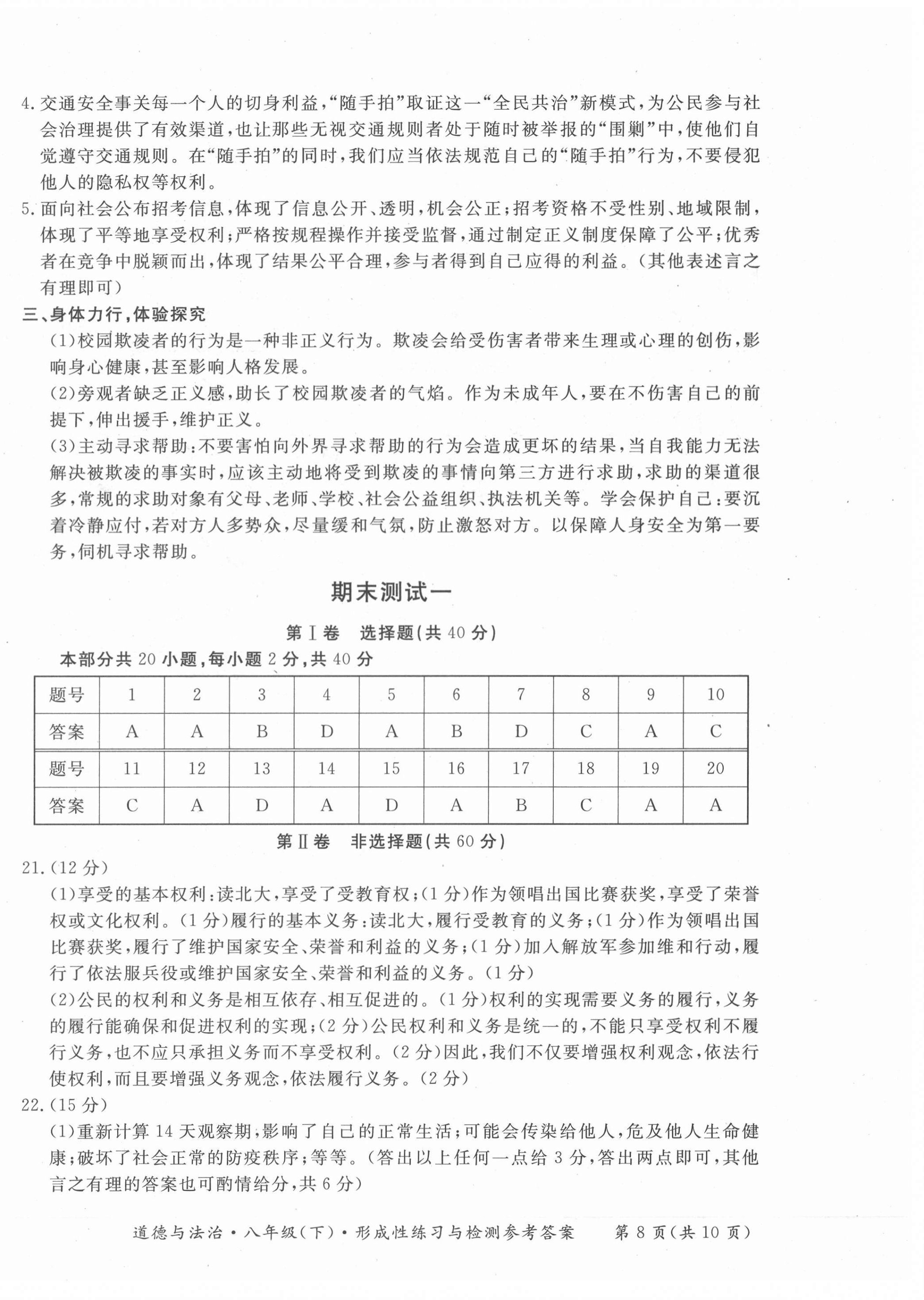 2021年形成性练习与检测八年级道德与法治下册人教版