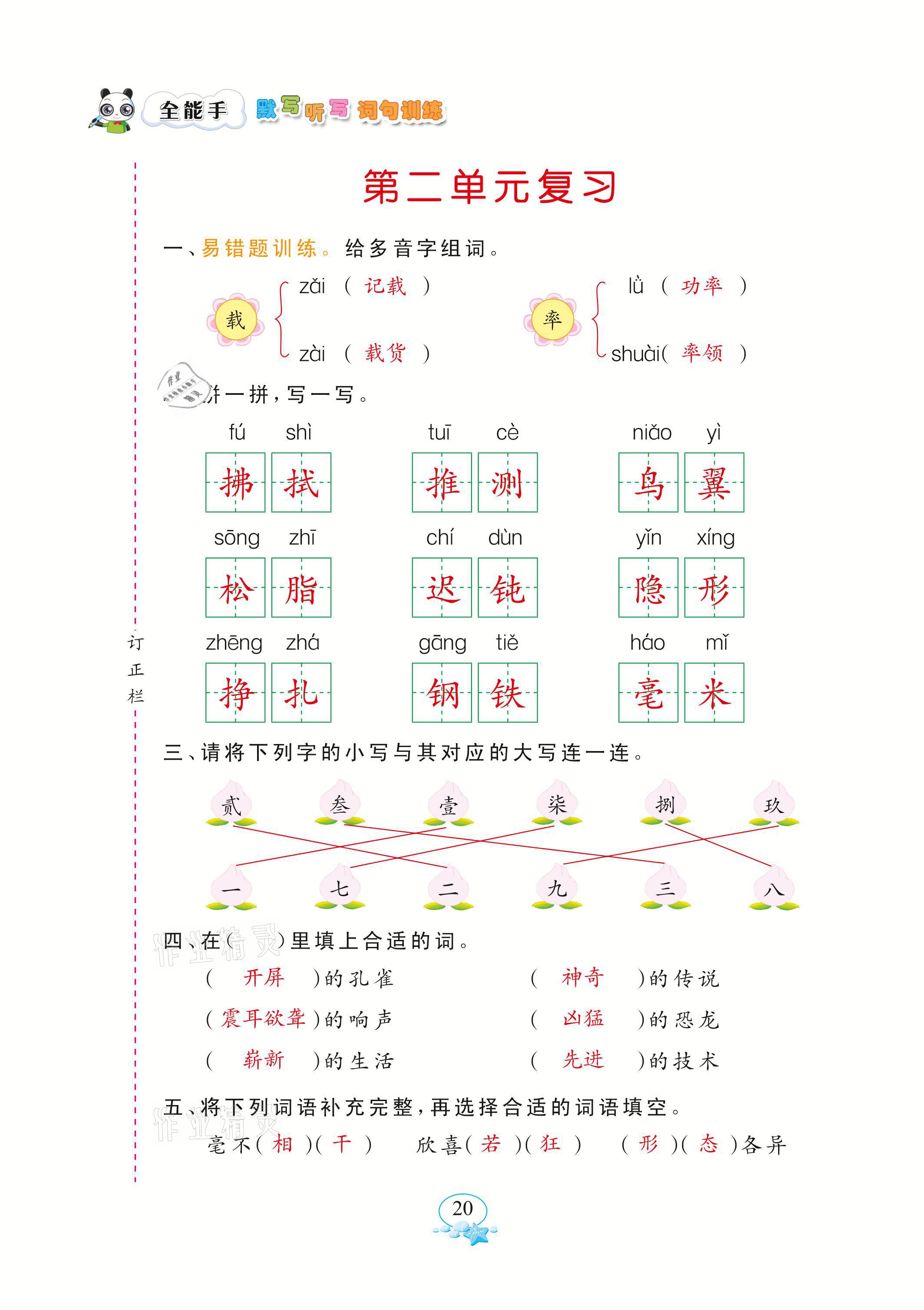 注:目前有些书本章节名称可能整理的还不是很完善,但都是按照顺序排列的,请同学们按照顺序仔细查找。练习册 2021年全能手默写听写词句训练四年级语文下册人教版 答案主要是用来给同学们做完题方便对答案用的,请勿直接抄袭。