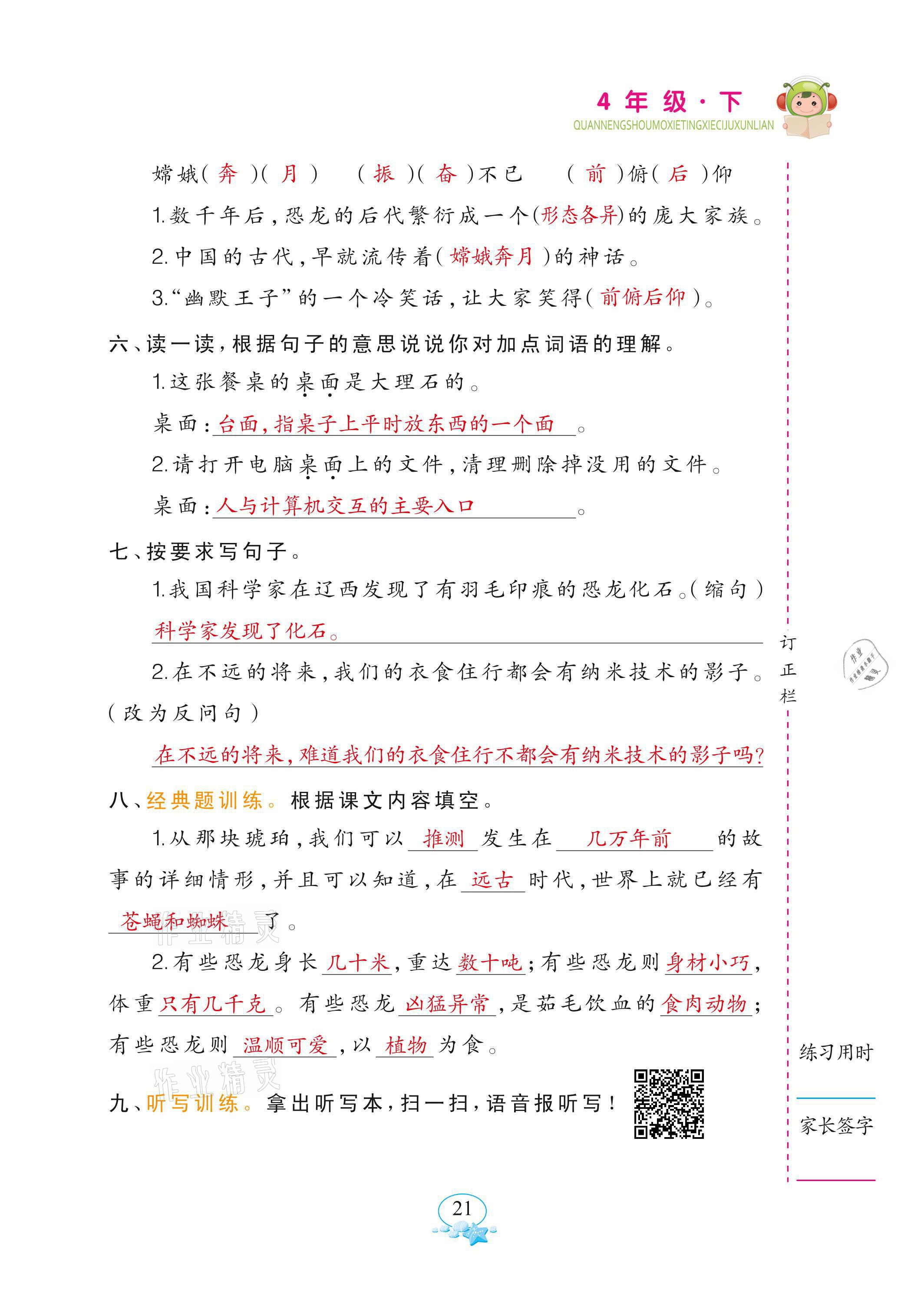 注:目前有些书本章节名称可能整理的还不是很完善,但都是按照顺序排列的,请同学们按照顺序仔细查找。练习册 2021年全能手默写听写词句训练四年级语文下册人教版 答案主要是用来给同学们做完题方便对答案用的,请勿直接抄袭。