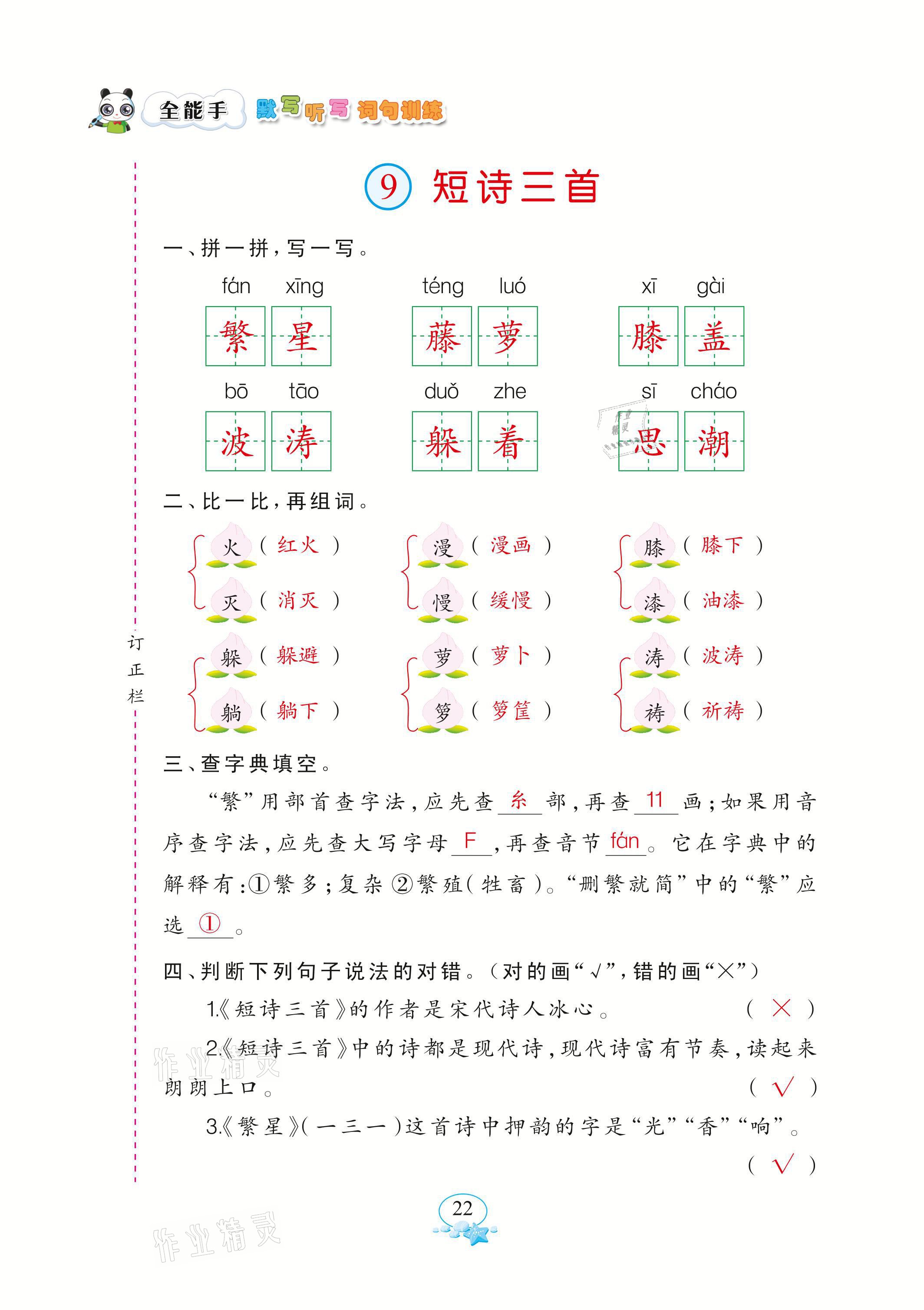 注:目前有些书本章节名称可能整理的还不是很完善,但都是按照顺序排列的,请同学们按照顺序仔细查找。练习册 2021年全能手默写听写词句训练四年级语文下册人教版 答案主要是用来给同学们做完题方便对答案用的,请勿直接抄袭。