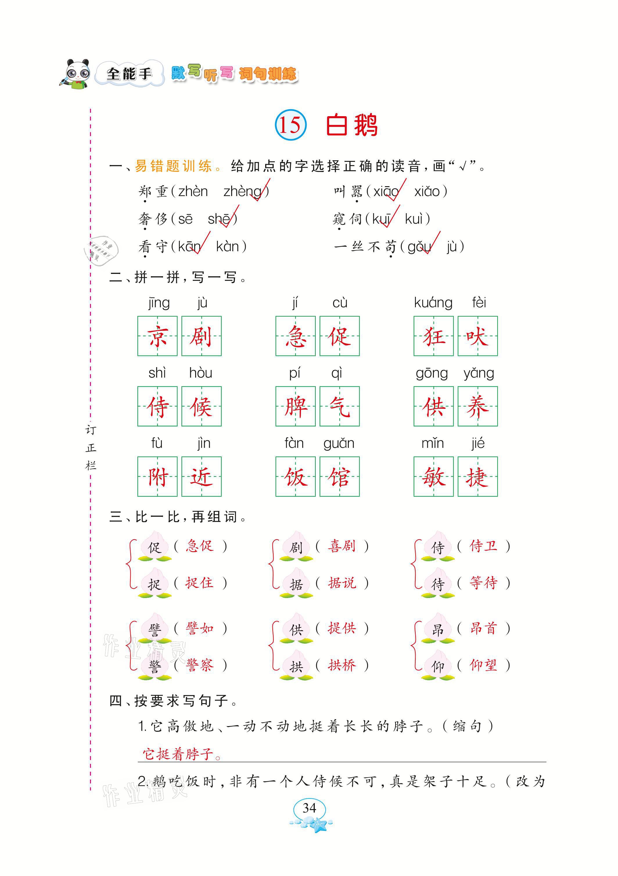 注:目前有些书本章节名称可能整理的还不是很完善,但都是按照顺序排列的,请同学们按照顺序仔细查找。练习册 2021年全能手默写听写词句训练四年级语文下册人教版 答案主要是用来给同学们做完题方便对答案用的,请勿直接抄袭。