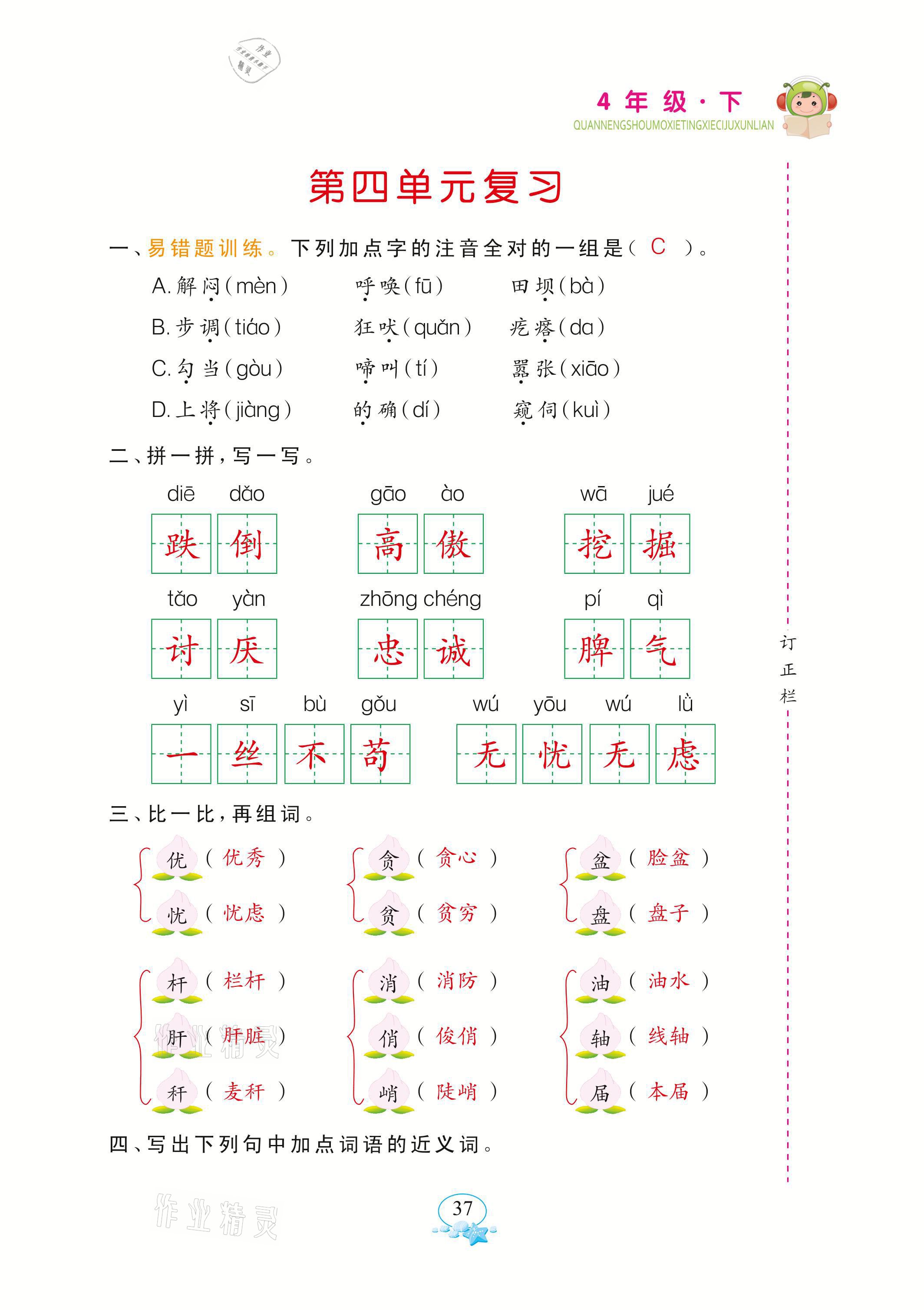 注:目前有些书本章节名称可能整理的还不是很完善,但都是按照顺序排列的,请同学们按照顺序仔细查找。练习册 2021年全能手默写听写词句训练四年级语文下册人教版 答案主要是用来给同学们做完题方便对答案用的,请勿直接抄袭。