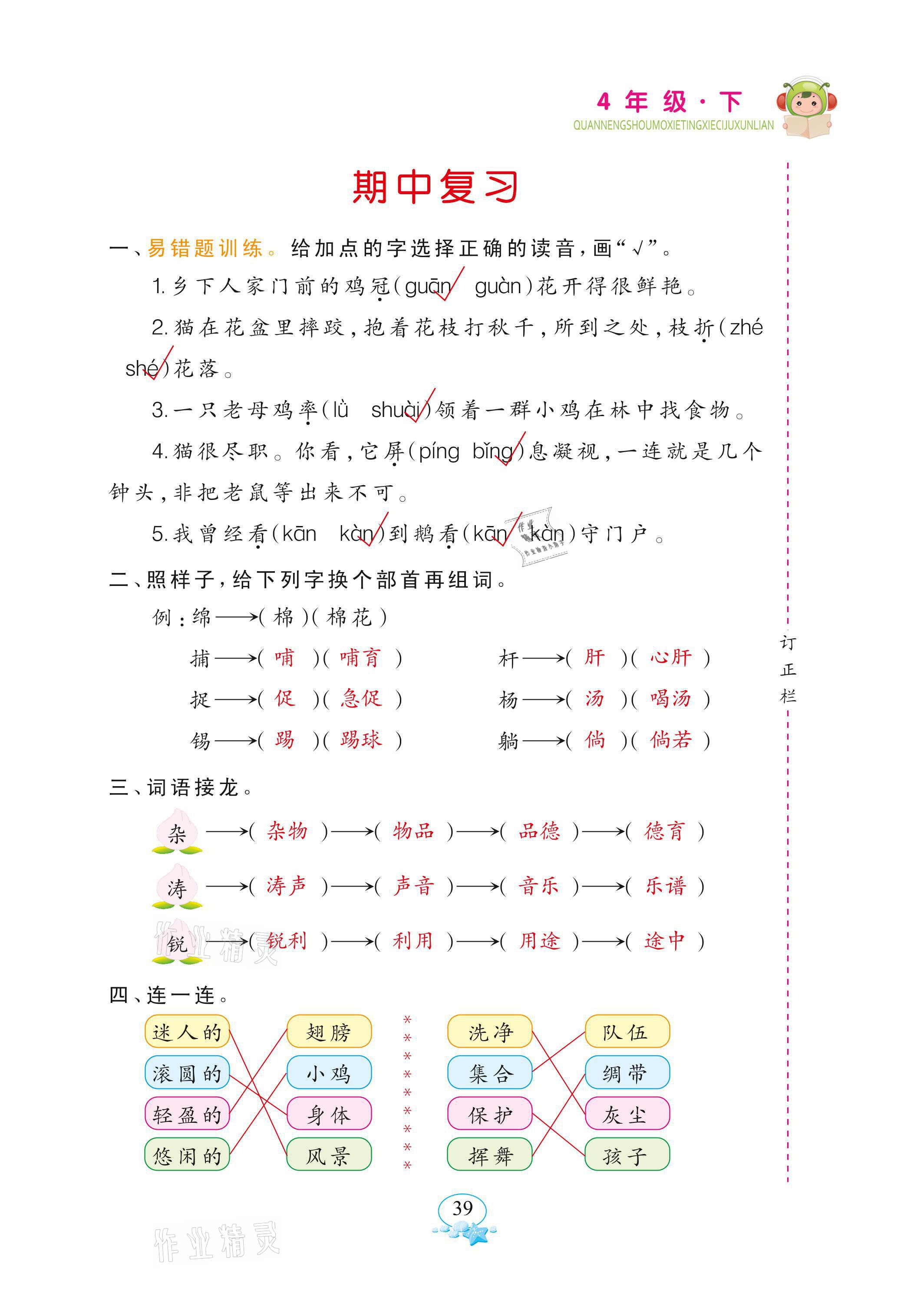 注:目前有些书本章节名称可能整理的还不是很完善,但都是按照顺序排列的,请同学们按照顺序仔细查找。练习册 2021年全能手默写听写词句训练四年级语文下册人教版 答案主要是用来给同学们做完题方便对答案用的,请勿直接抄袭。