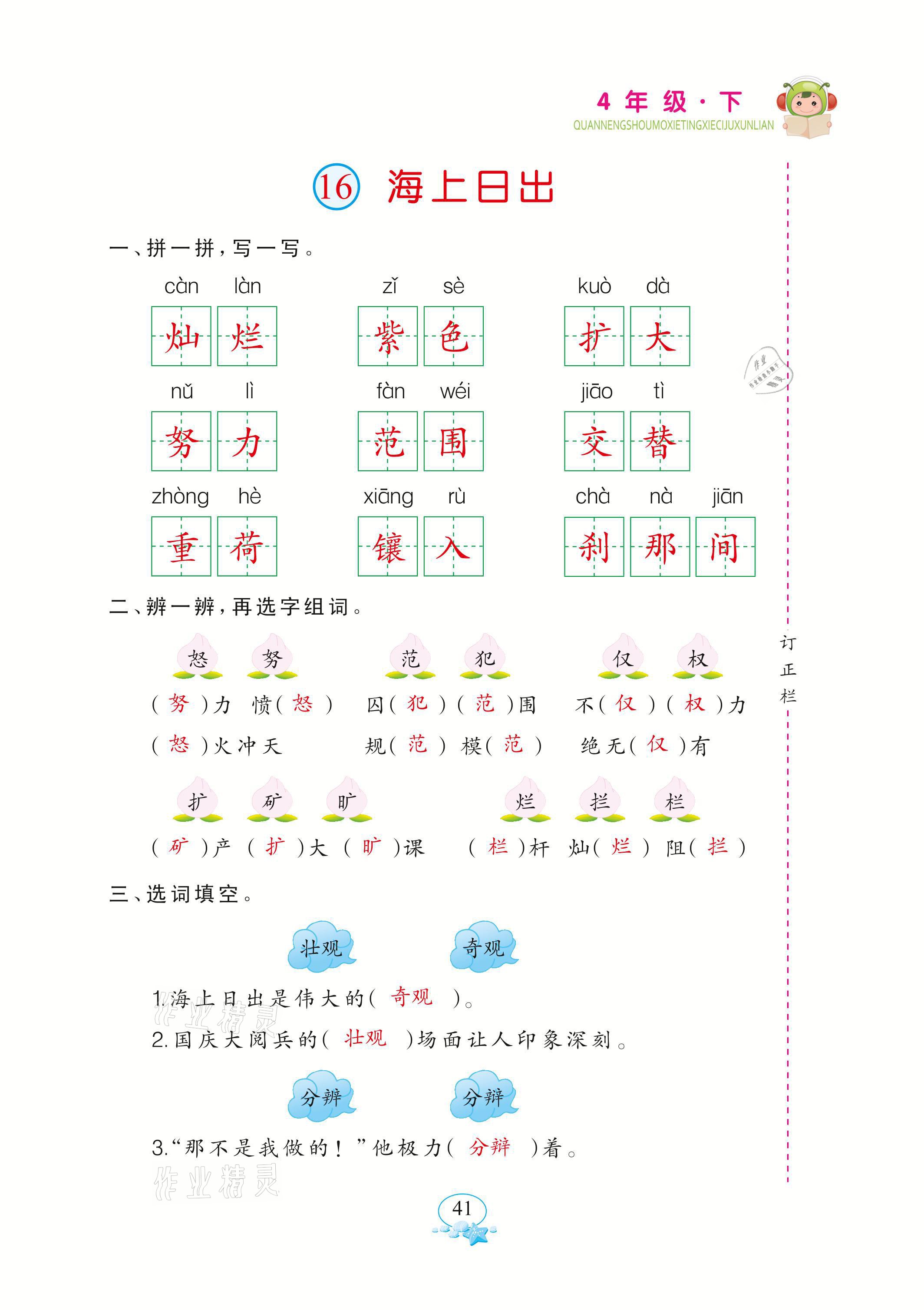 注:目前有些书本章节名称可能整理的还不是很完善,但都是按照顺序排列的,请同学们按照顺序仔细查找。练习册 2021年全能手默写听写词句训练四年级语文下册人教版 答案主要是用来给同学们做完题方便对答案用的,请勿直接抄袭。