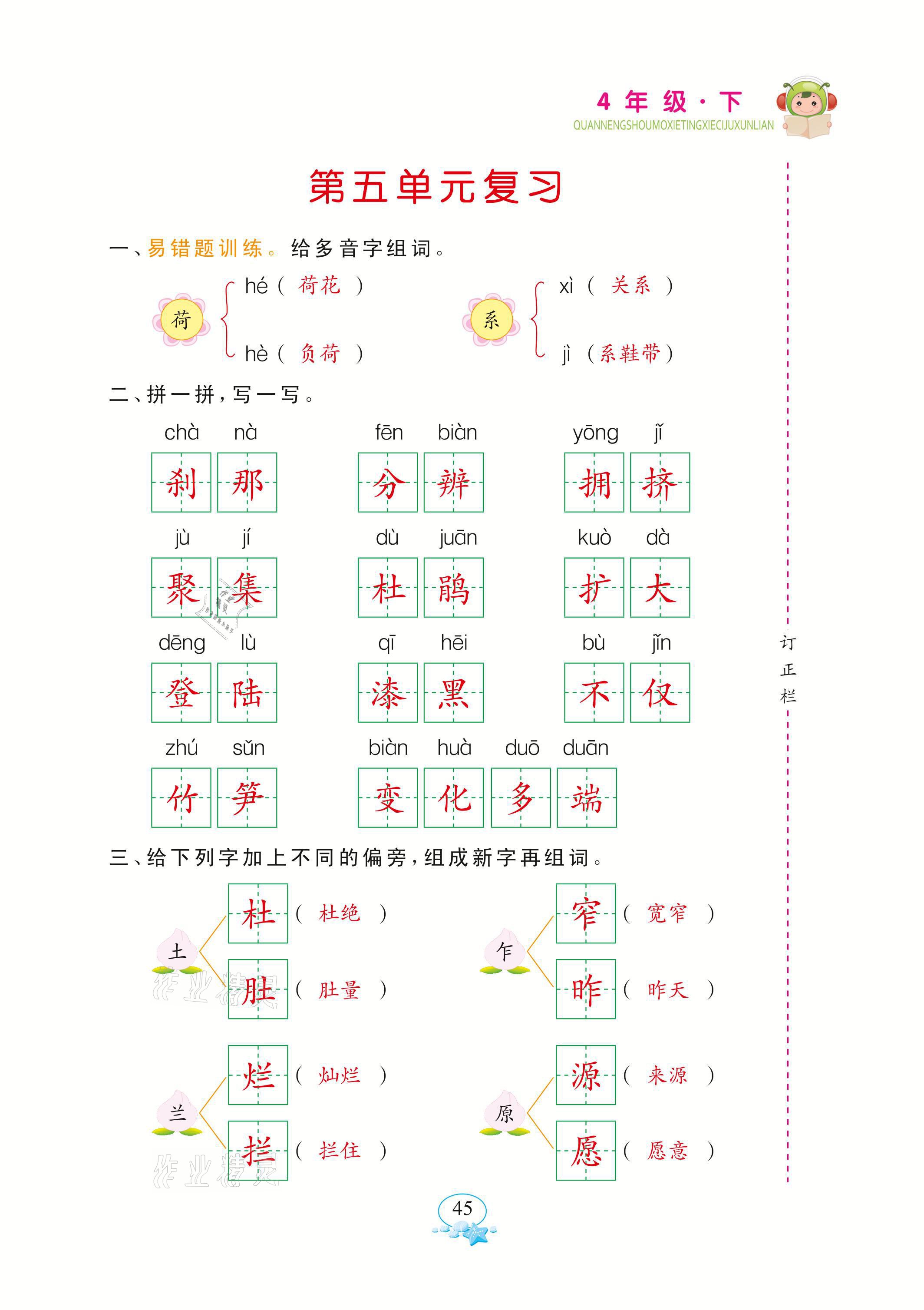 注:目前有些书本章节名称可能整理的还不是很完善,但都是按照顺序排列的,请同学们按照顺序仔细查找。练习册 2021年全能手默写听写词句训练四年级语文下册人教版 答案主要是用来给同学们做完题方便对答案用的,请勿直接抄袭。