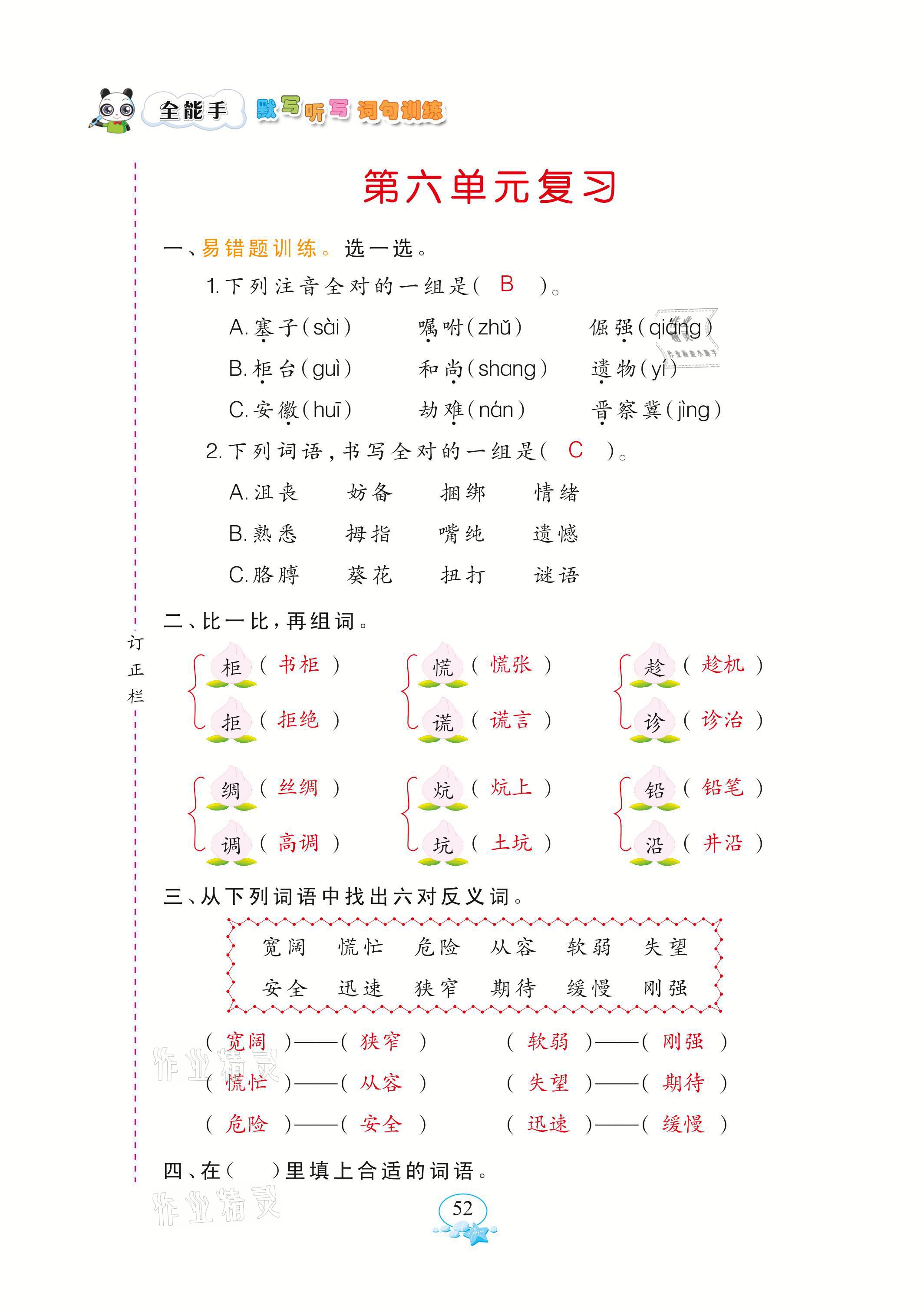 注:目前有些书本章节名称可能整理的还不是很完善,但都是按照顺序排列的,请同学们按照顺序仔细查找。练习册 2021年全能手默写听写词句训练四年级语文下册人教版 答案主要是用来给同学们做完题方便对答案用的,请勿直接抄袭。