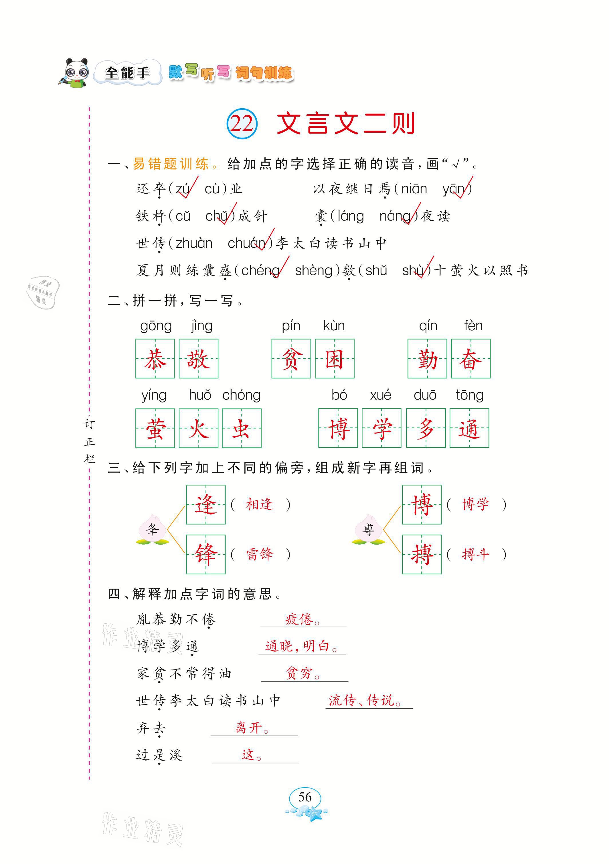 注:目前有些书本章节名称可能整理的还不是很完善,但都是按照顺序排列的,请同学们按照顺序仔细查找。练习册 2021年全能手默写听写词句训练四年级语文下册人教版 答案主要是用来给同学们做完题方便对答案用的,请勿直接抄袭。