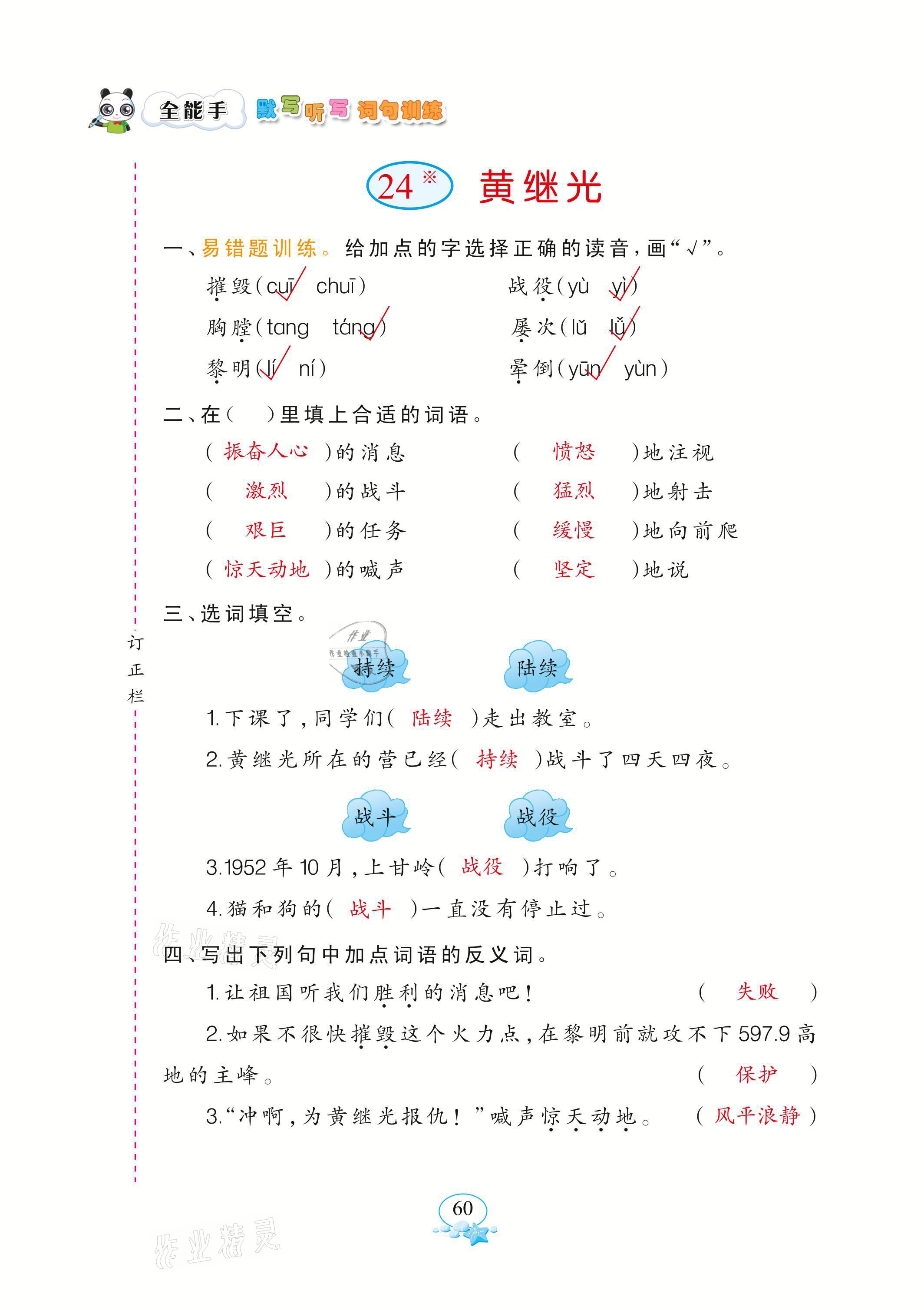 注:目前有些书本章节名称可能整理的还不是很完善,但都是按照顺序排列的,请同学们按照顺序仔细查找。练习册 2021年全能手默写听写词句训练四年级语文下册人教版 答案主要是用来给同学们做完题方便对答案用的,请勿直接抄袭。