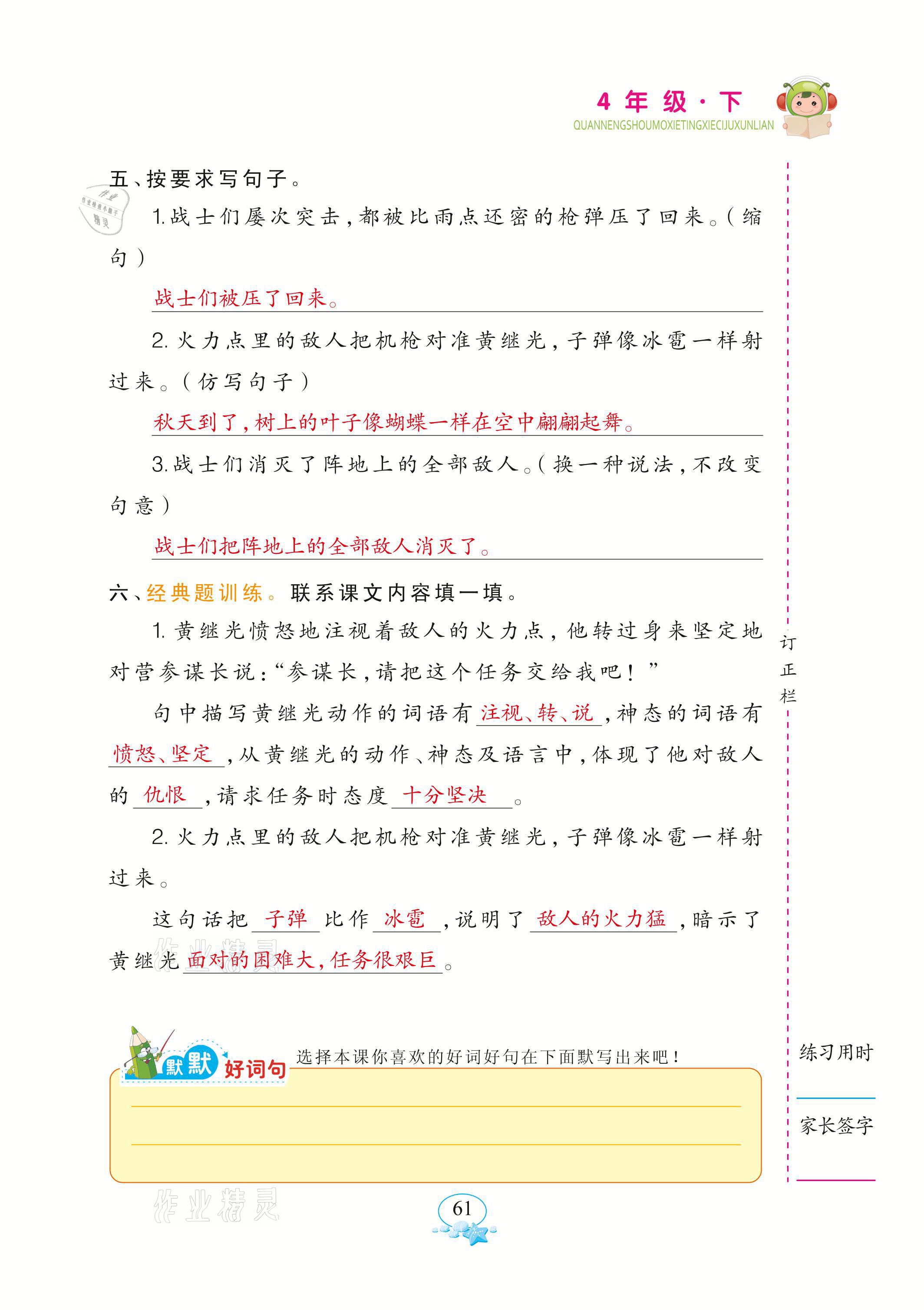 注:目前有些书本章节名称可能整理的还不是很完善,但都是按照顺序排列的,请同学们按照顺序仔细查找。练习册 2021年全能手默写听写词句训练四年级语文下册人教版 答案主要是用来给同学们做完题方便对答案用的,请勿直接抄袭。