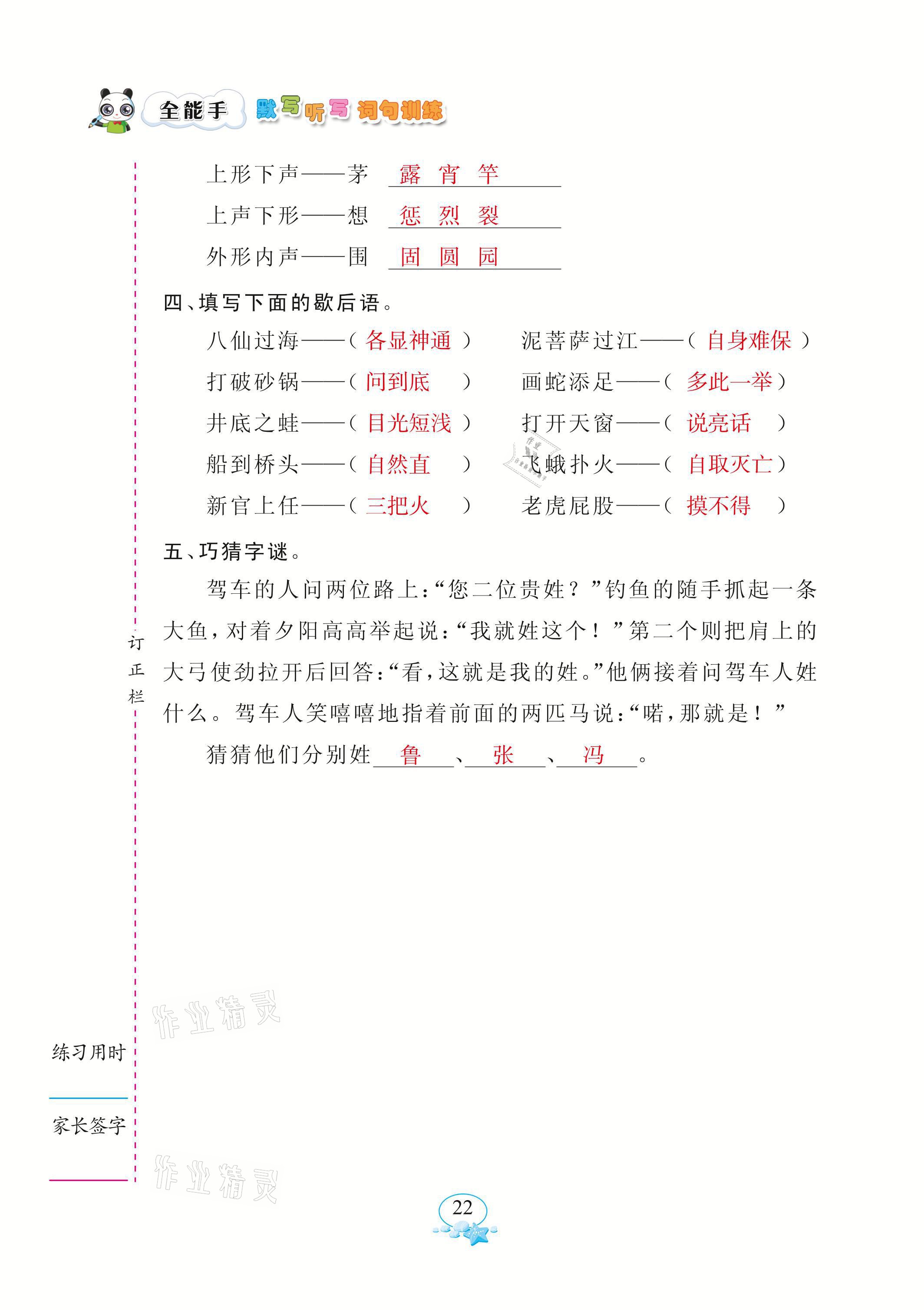 注:目前有些书本章节名称可能整理的还不是很完善,但都是按照顺序排列的,请同学们按照顺序仔细查找。练习册 2021年全能手默写听写词句训练五年级语文下册人教版 答案主要是用来给同学们做完题方便对答案用的,请勿直接抄袭。