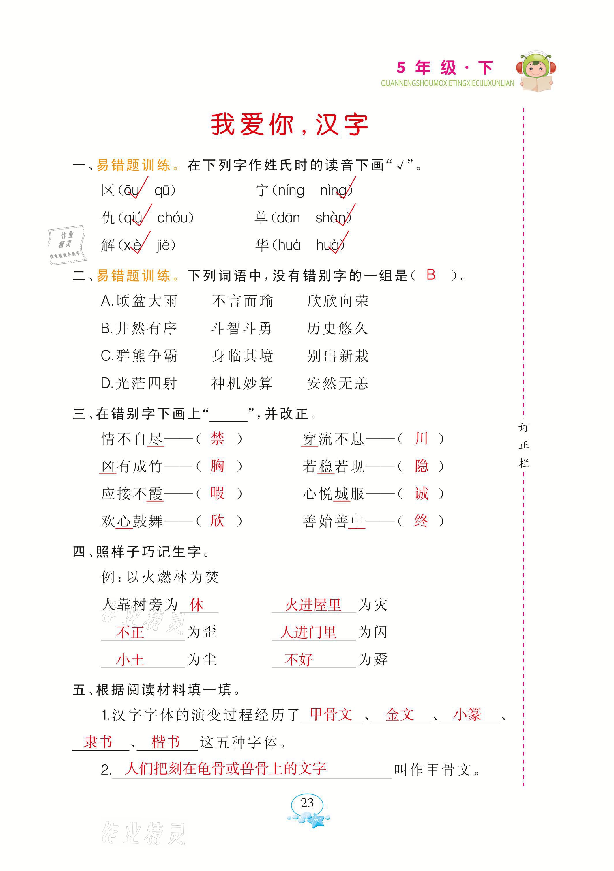 注:目前有些书本章节名称可能整理的还不是很完善,但都是按照顺序排列的,请同学们按照顺序仔细查找。练习册 2021年全能手默写听写词句训练五年级语文下册人教版 答案主要是用来给同学们做完题方便对答案用的,请勿直接抄袭。
