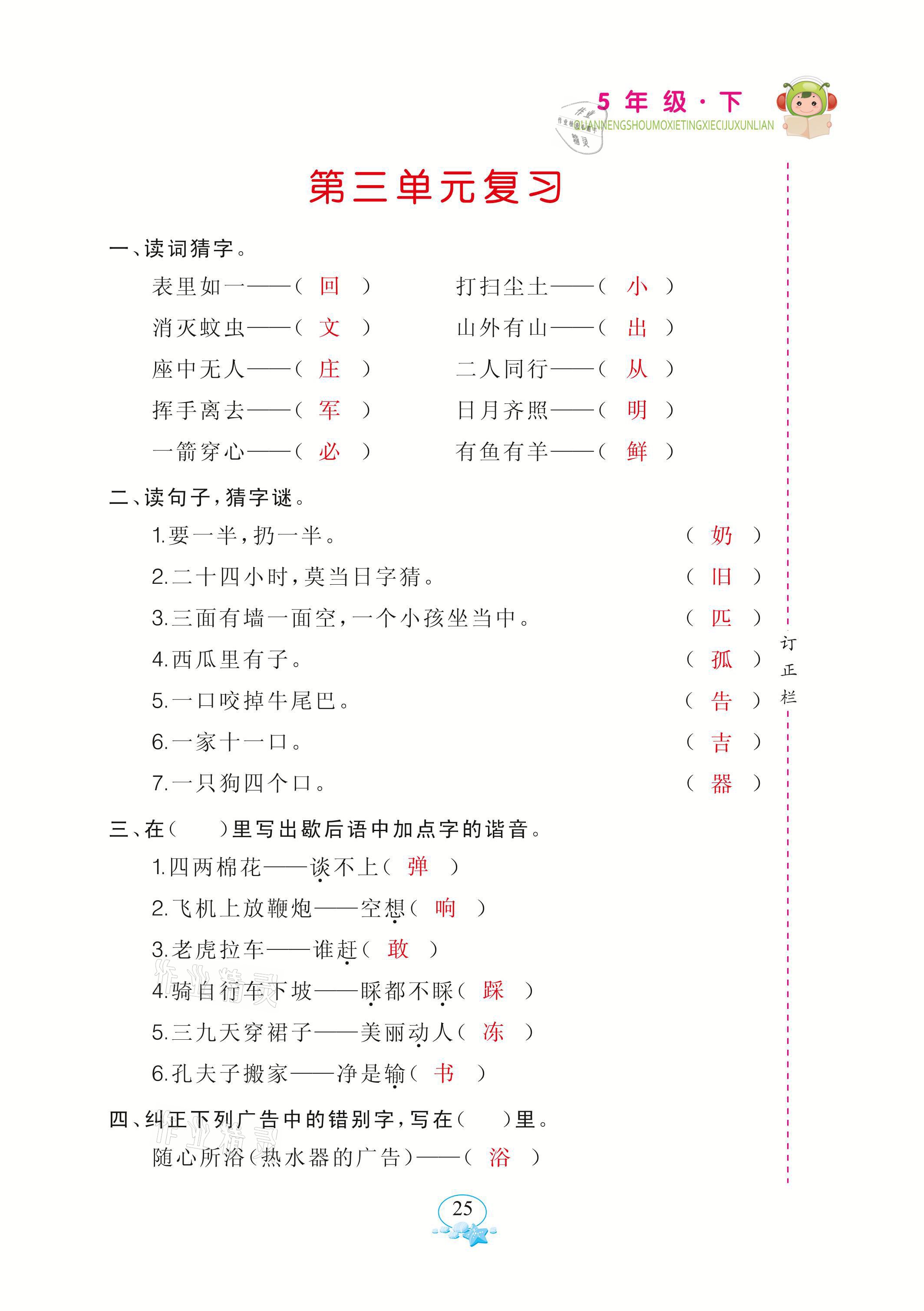 注:目前有些书本章节名称可能整理的还不是很完善,但都是按照顺序排列的,请同学们按照顺序仔细查找。练习册 2021年全能手默写听写词句训练五年级语文下册人教版 答案主要是用来给同学们做完题方便对答案用的,请勿直接抄袭。