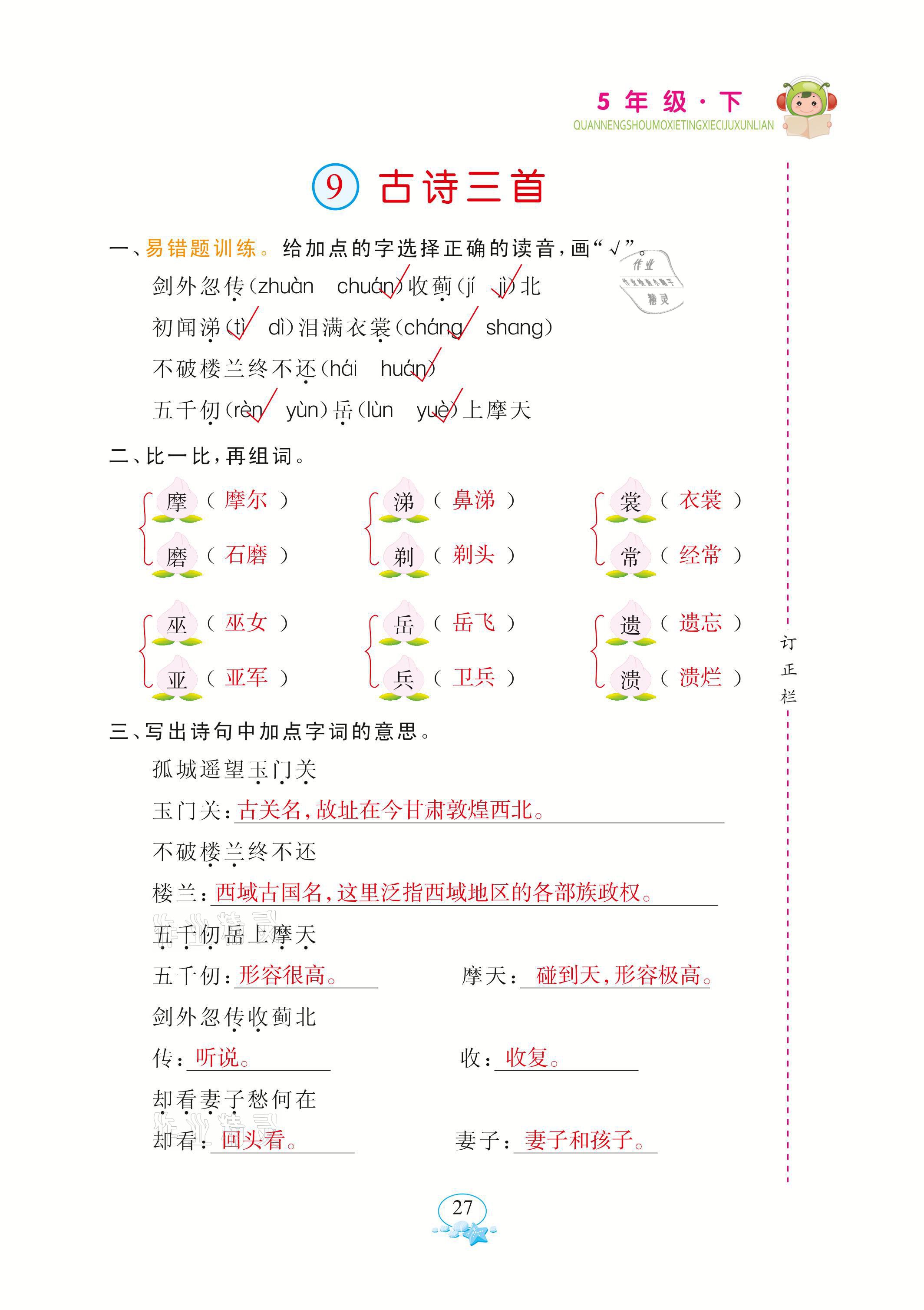 注:目前有些书本章节名称可能整理的还不是很完善,但都是按照顺序排列的,请同学们按照顺序仔细查找。练习册 2021年全能手默写听写词句训练五年级语文下册人教版 答案主要是用来给同学们做完题方便对答案用的,请勿直接抄袭。