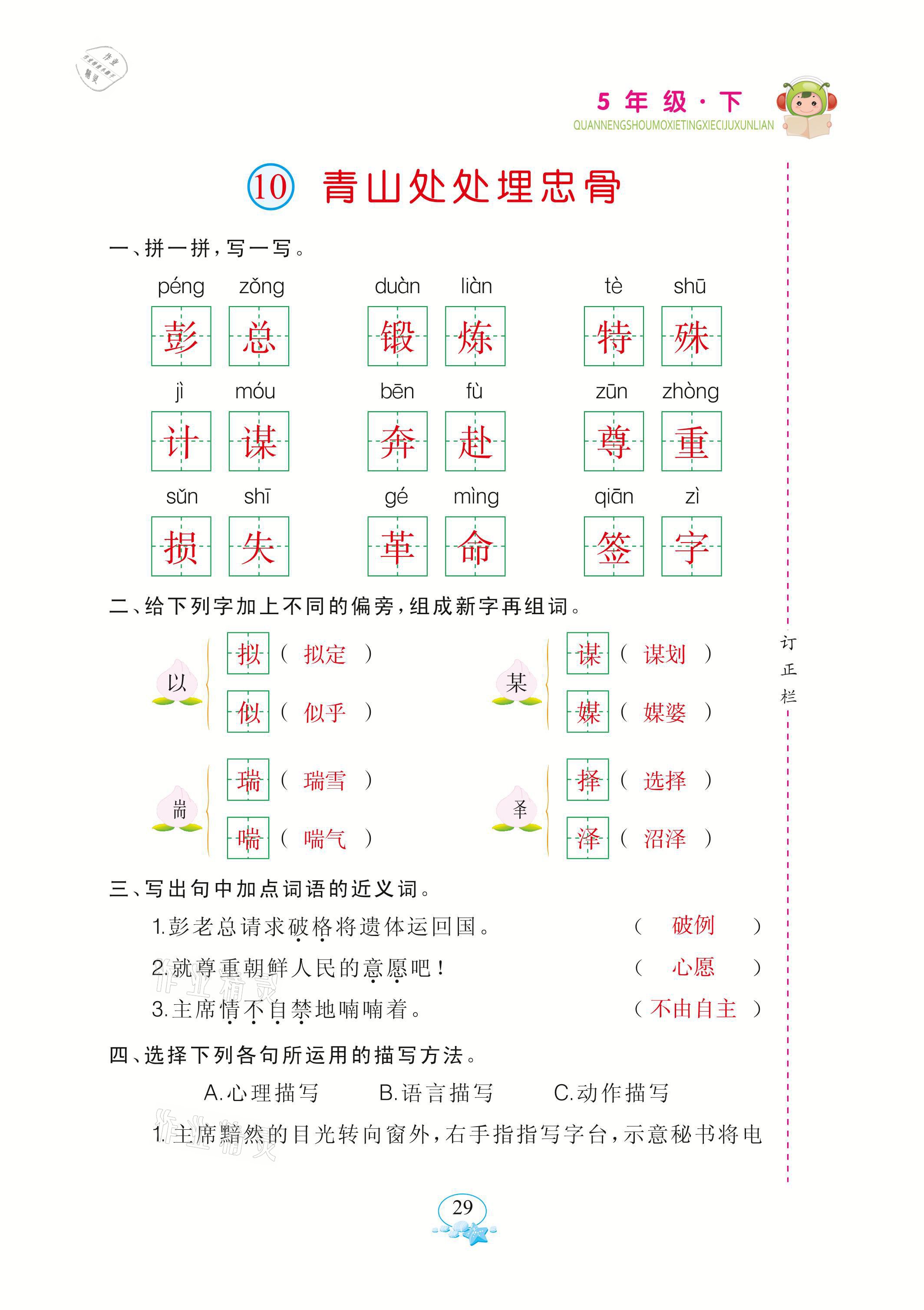 注:目前有些书本章节名称可能整理的还不是很完善,但都是按照顺序排列的,请同学们按照顺序仔细查找。练习册 2021年全能手默写听写词句训练五年级语文下册人教版 答案主要是用来给同学们做完题方便对答案用的,请勿直接抄袭。