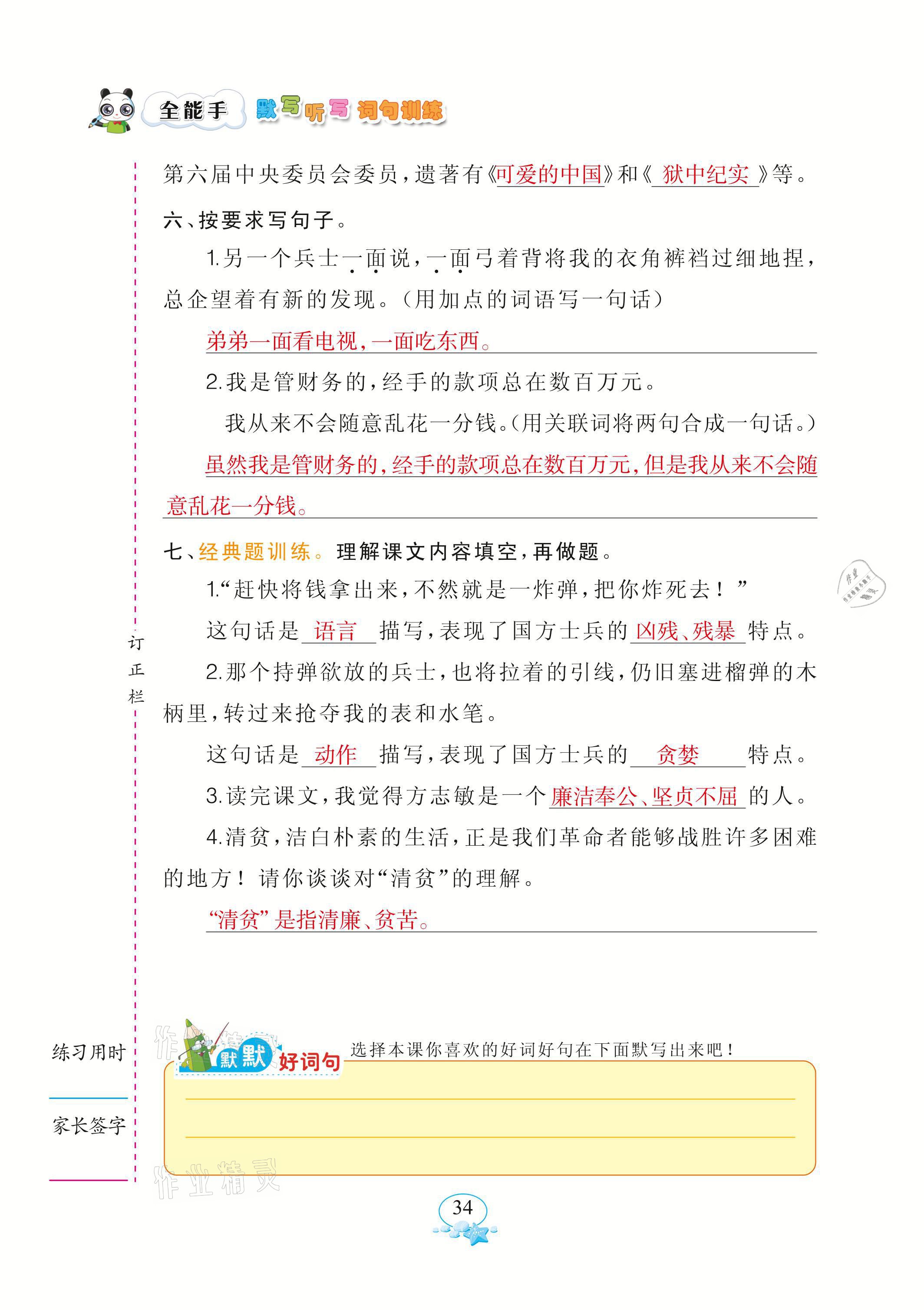 注:目前有些书本章节名称可能整理的还不是很完善,但都是按照顺序排列的,请同学们按照顺序仔细查找。练习册 2021年全能手默写听写词句训练五年级语文下册人教版 答案主要是用来给同学们做完题方便对答案用的,请勿直接抄袭。
