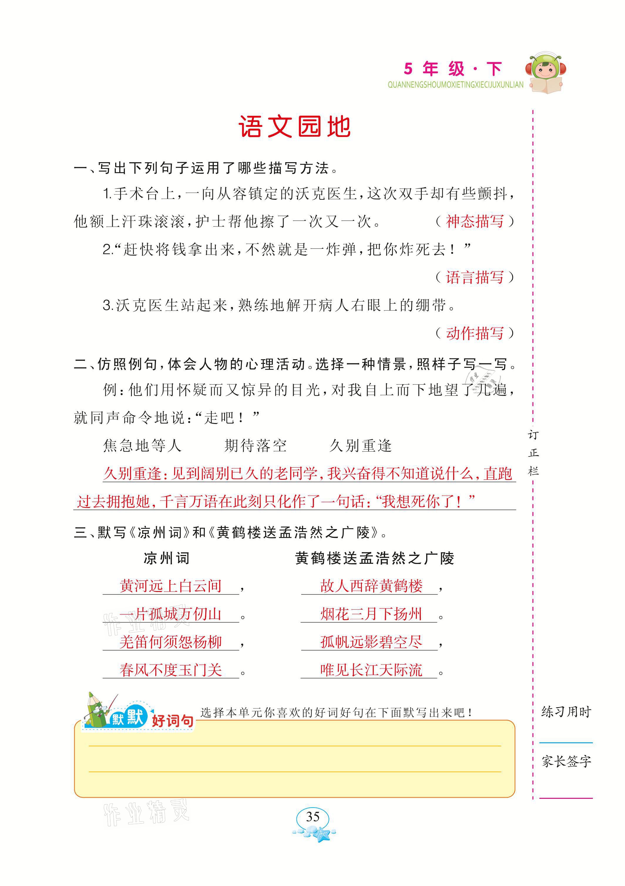 注:目前有些书本章节名称可能整理的还不是很完善,但都是按照顺序排列的,请同学们按照顺序仔细查找。练习册 2021年全能手默写听写词句训练五年级语文下册人教版 答案主要是用来给同学们做完题方便对答案用的,请勿直接抄袭。