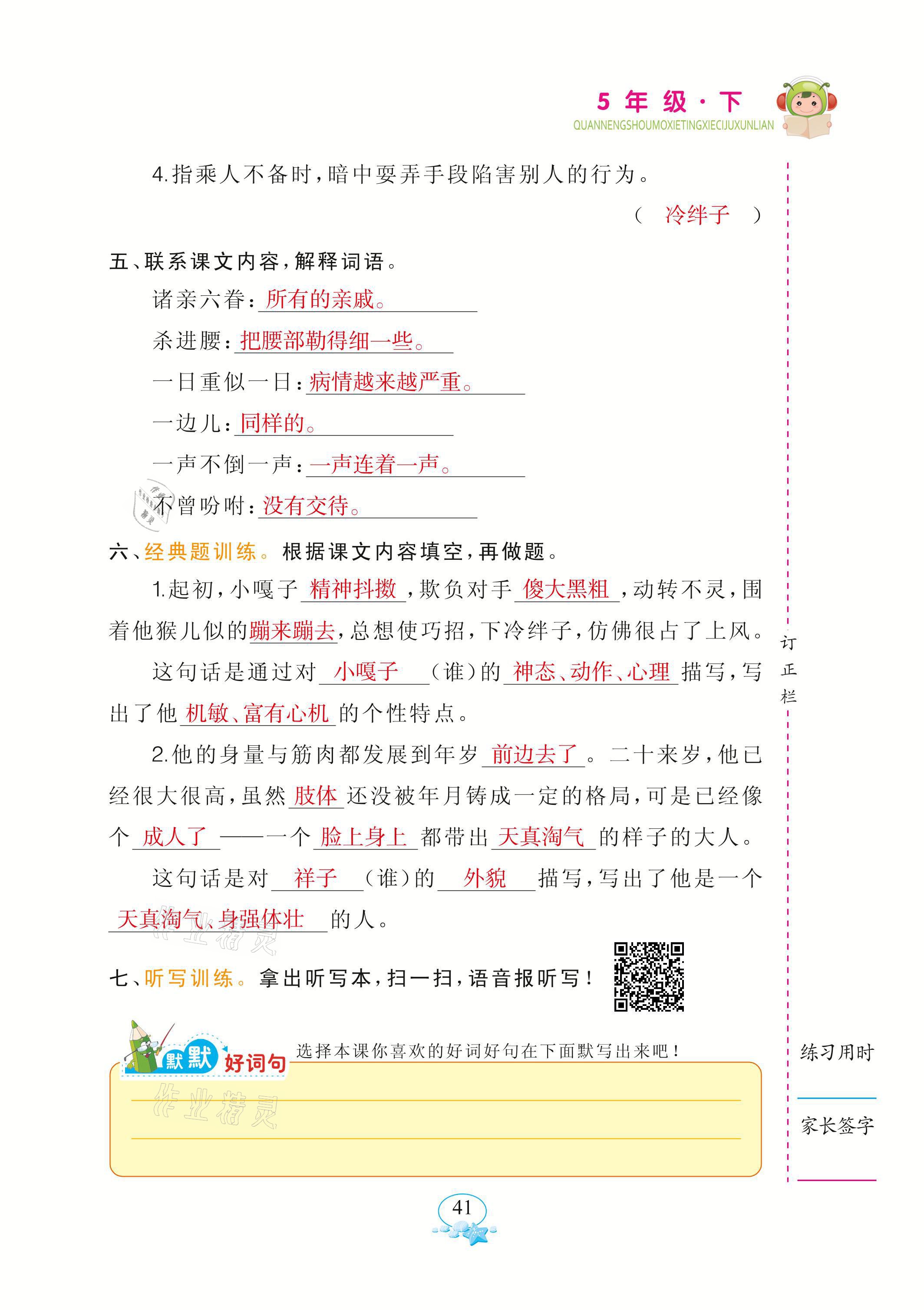 注:目前有些书本章节名称可能整理的还不是很完善,但都是按照顺序排列的,请同学们按照顺序仔细查找。练习册 2021年全能手默写听写词句训练五年级语文下册人教版 答案主要是用来给同学们做完题方便对答案用的,请勿直接抄袭。