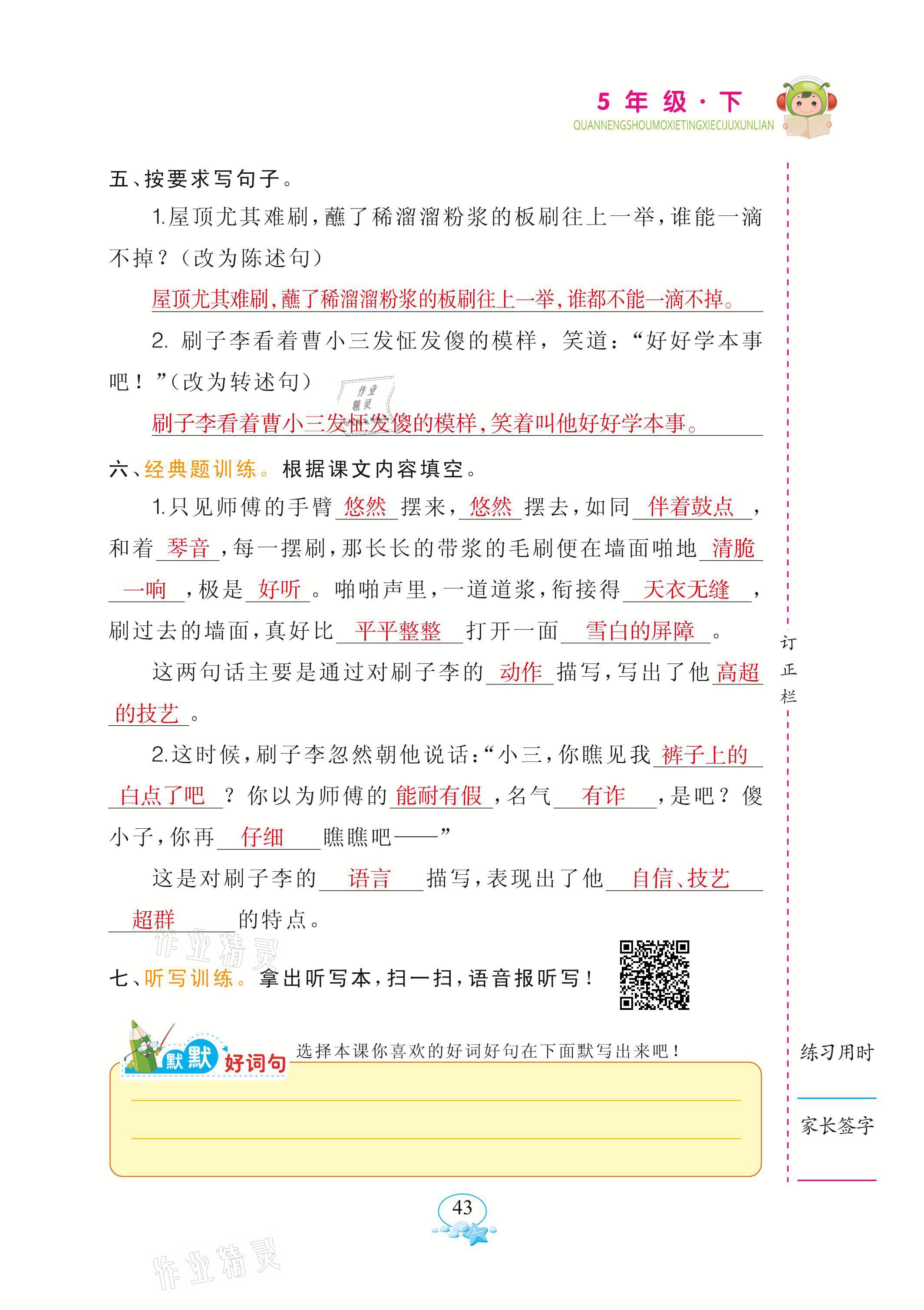 2021年全能手默写听写词句训练五年级语文下册人教版