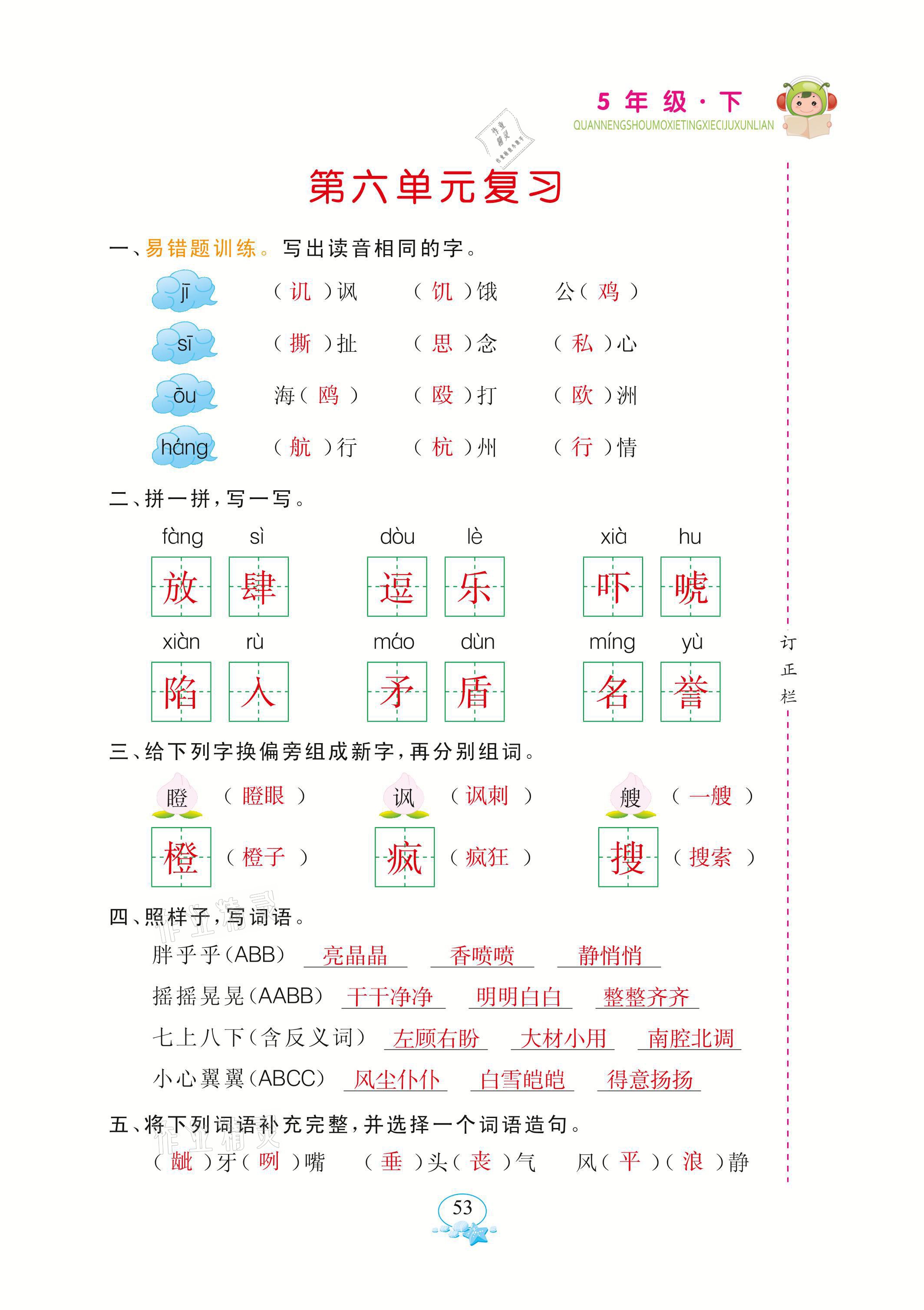 注:目前有些书本章节名称可能整理的还不是很完善,但都是按照顺序排列的,请同学们按照顺序仔细查找。练习册 2021年全能手默写听写词句训练五年级语文下册人教版 答案主要是用来给同学们做完题方便对答案用的,请勿直接抄袭。
