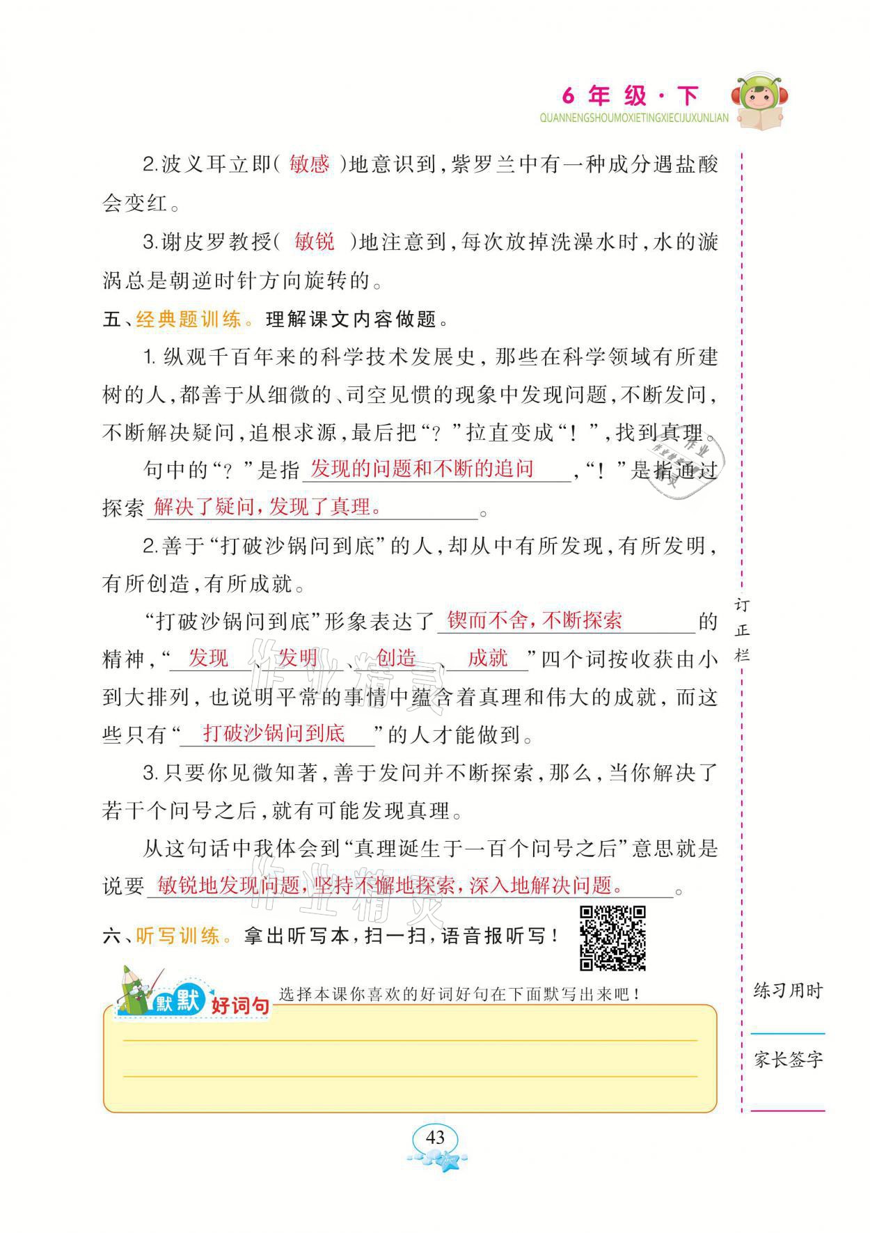 注:目前有些书本章节名称可能整理的还不是很完善,但都是按照顺序排列的,请同学们按照顺序仔细查找。练习册 2021年全能手默写听写词句训练六年级语文下册人教版 答案主要是用来给同学们做完题方便对答案用的,请勿直接抄袭。