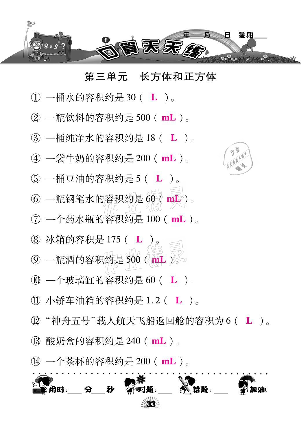 注:目前有些书本章节名称可能整理的还不是很完善,但都是按照顺序排列的,请同学们按照顺序仔细查找。练习册 2021年千里马口算天天练五年级数学下册人教版 答案主要是用来给同学们做完题方便对答案用的,请勿直接抄袭。